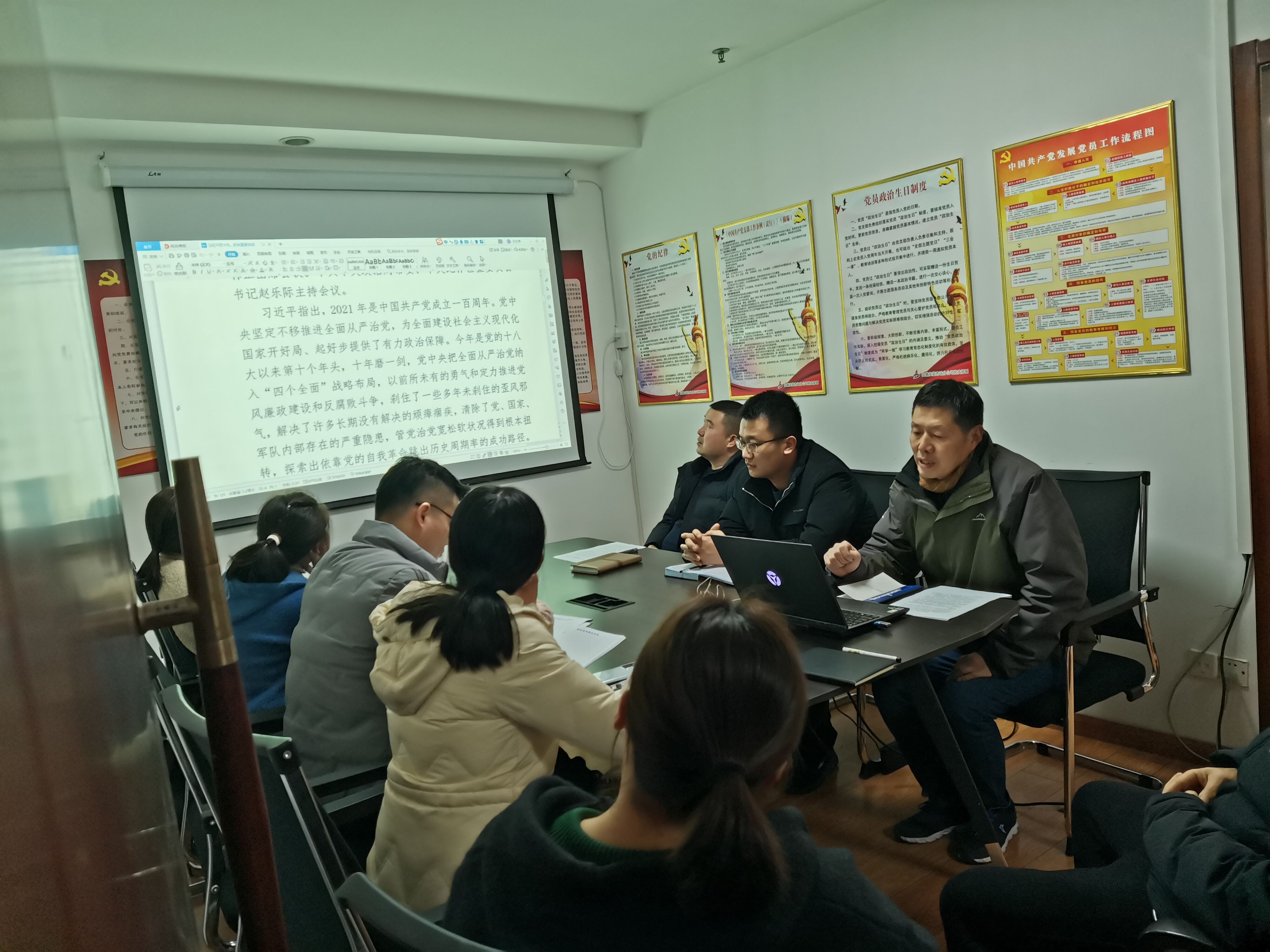 1月27日下午,市政分公司黨支部在分公司會議室召開全體黨員大會,學習貫徹中國共產(chǎn)黨第十九屆中央紀律檢查委員會第六次全會精神。分公司全體黨員干部參加學習會,會議由黨支部書記胡迎東主持。