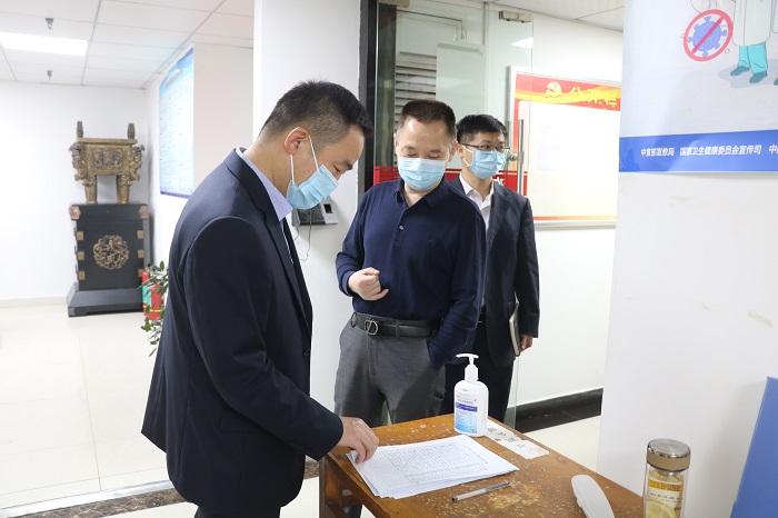 黃代實(shí)地督查了安徽安裝機(jī)關(guān)辦公場所和合肥分公司,通過現(xiàn)場查看、查閱臺賬資料等方式,重點(diǎn)督查“兩碼”應(yīng)用、測溫、人員進(jìn)出登記、防疫物資發(fā)放和儲備等疫情防控措施落實(shí)情況。