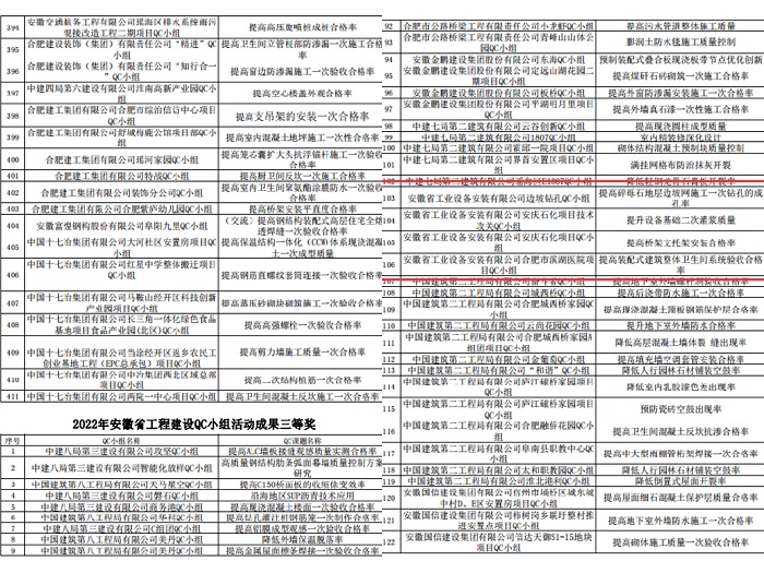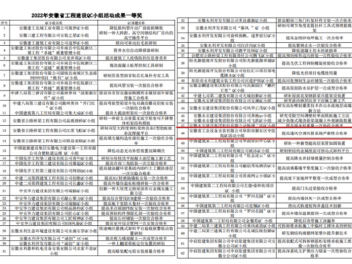 近日,從安徽省建設行業(yè)質(zhì)量與安全協(xié)會傳來喜訊,協(xié)會發(fā)布的《關于2022年安徽省工程質(zhì)量管理小組及質(zhì)量信得過班組建設活動成果的通知》文件中,安徽安裝公司共獲得11項安徽省工程建設QC小組活動成果獎項。