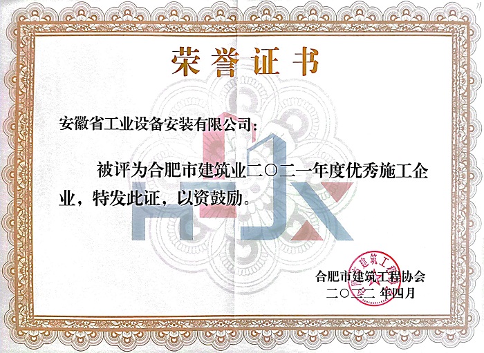 “合肥市優(yōu)秀企業(yè)、單項先進企業(yè)”評選旨在表彰在經(jīng)營管理、質(zhì)量安全、誠信建設(shè)、經(jīng)濟效益和社會效益等方面做出突出成績的施工企業(yè)。近年來,公司在省內(nèi)外市場重合同、守信用,綜合實力在安裝行業(yè)處于領(lǐng)先地位,以良好的經(jīng)營業(yè)績、突出的社會貢獻、深入人心的品牌形象獲得了社會各界的認可。