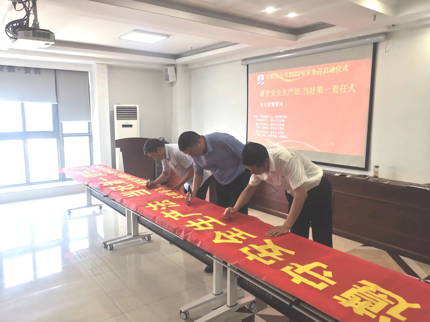 會(huì)議開(kāi)始前首先舉行了市政分公司2022年安全月啟動(dòng)儀式,分公司副經(jīng)理黃彥濤宣讀了第一責(zé)任人倡議書(shū),作了分公司安全生產(chǎn)月動(dòng)員講話,與會(huì)人員集體安全宣誓,并在安全月主題條幅上簽名。