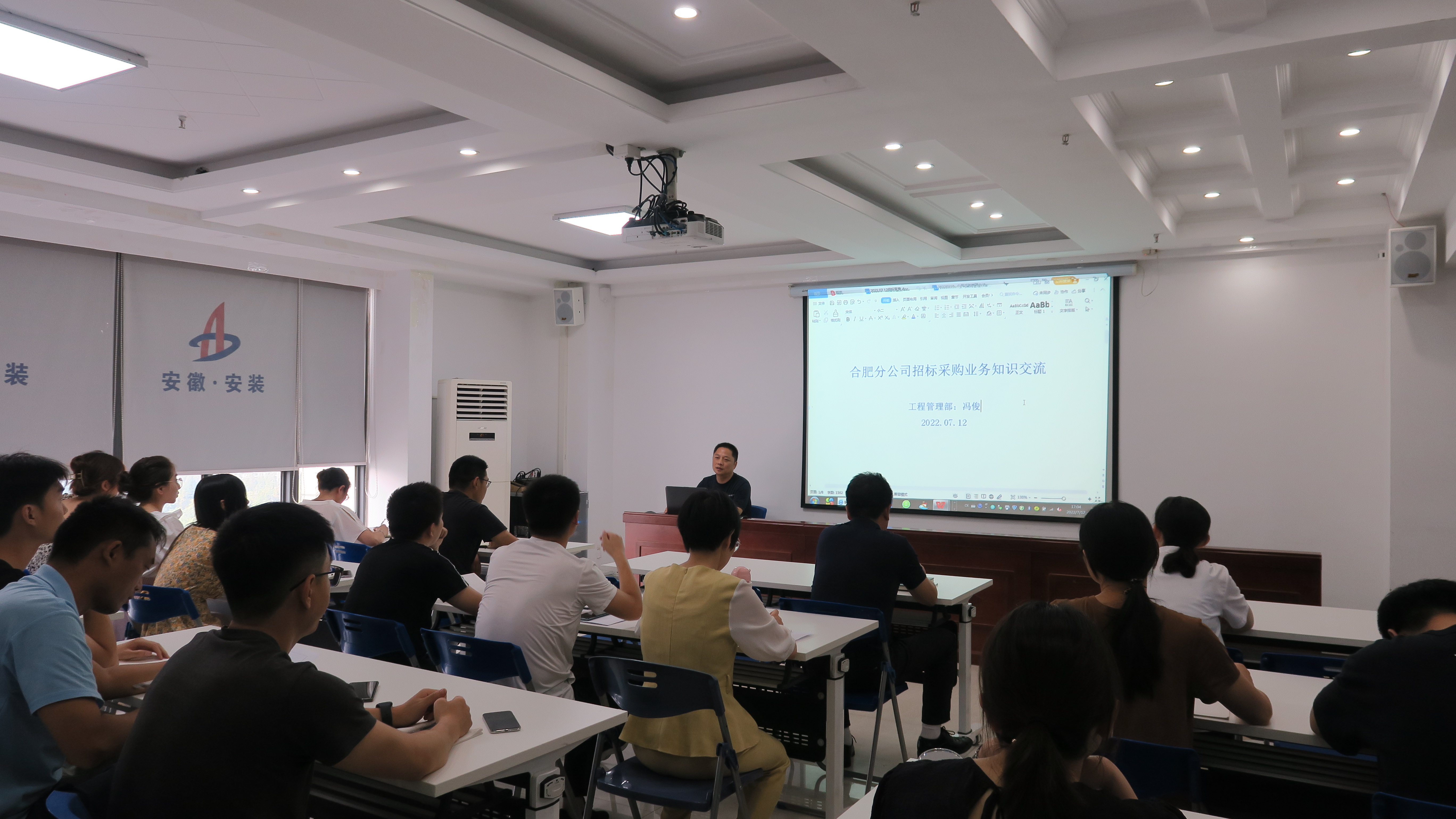 根據(jù)合肥分公司“項(xiàng)目管理年”活動(dòng)學(xué)習(xí)培訓(xùn)計(jì)劃安排,7月12日下午,分公司組織開展了第四期“項(xiàng)目管理年”活動(dòng)制度學(xué)習(xí)會(huì),由分公司工程管理部馮俊宣貫集團(tuán)及公司最新招標(biāo)采購業(yè)務(wù)相關(guān)知識(shí)。分公司領(lǐng)導(dǎo)班子成員及機(jī)關(guān)員工參會(huì),外地項(xiàng)目以視頻形式參會(huì)。