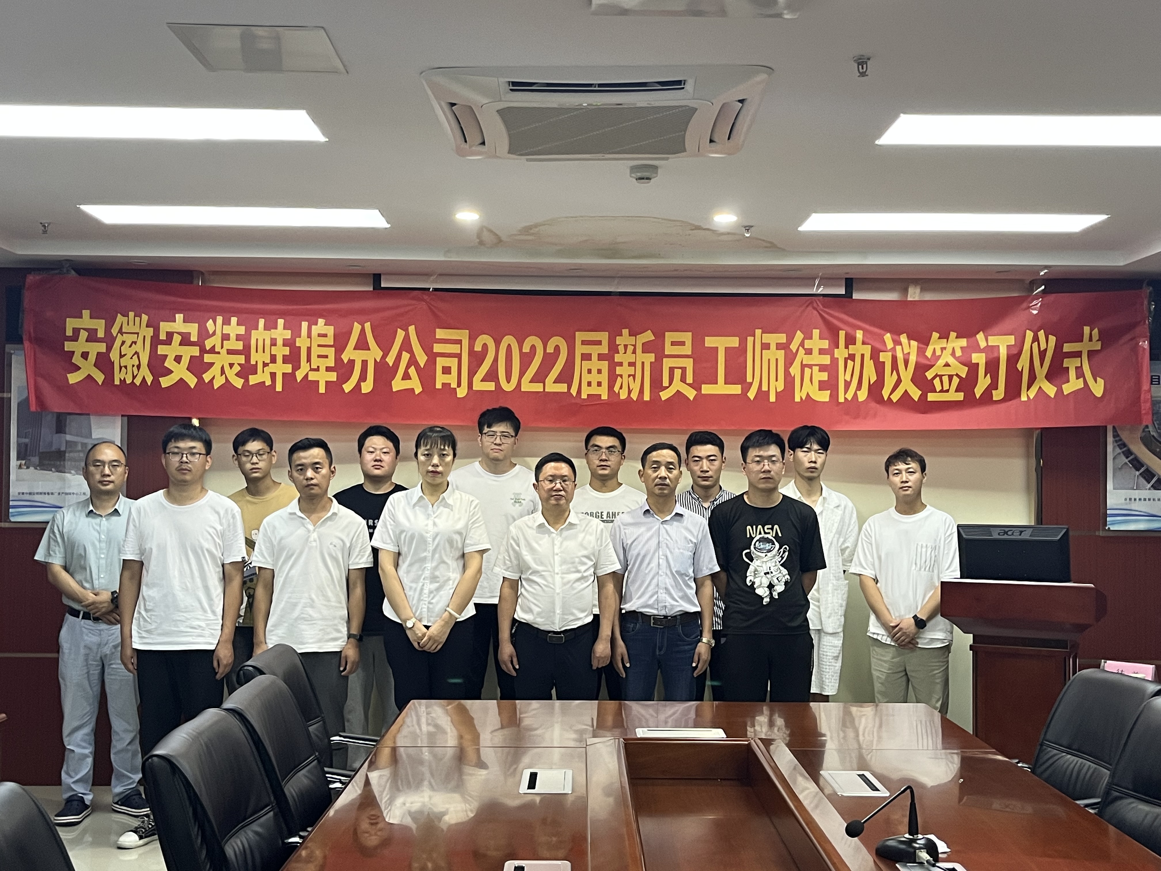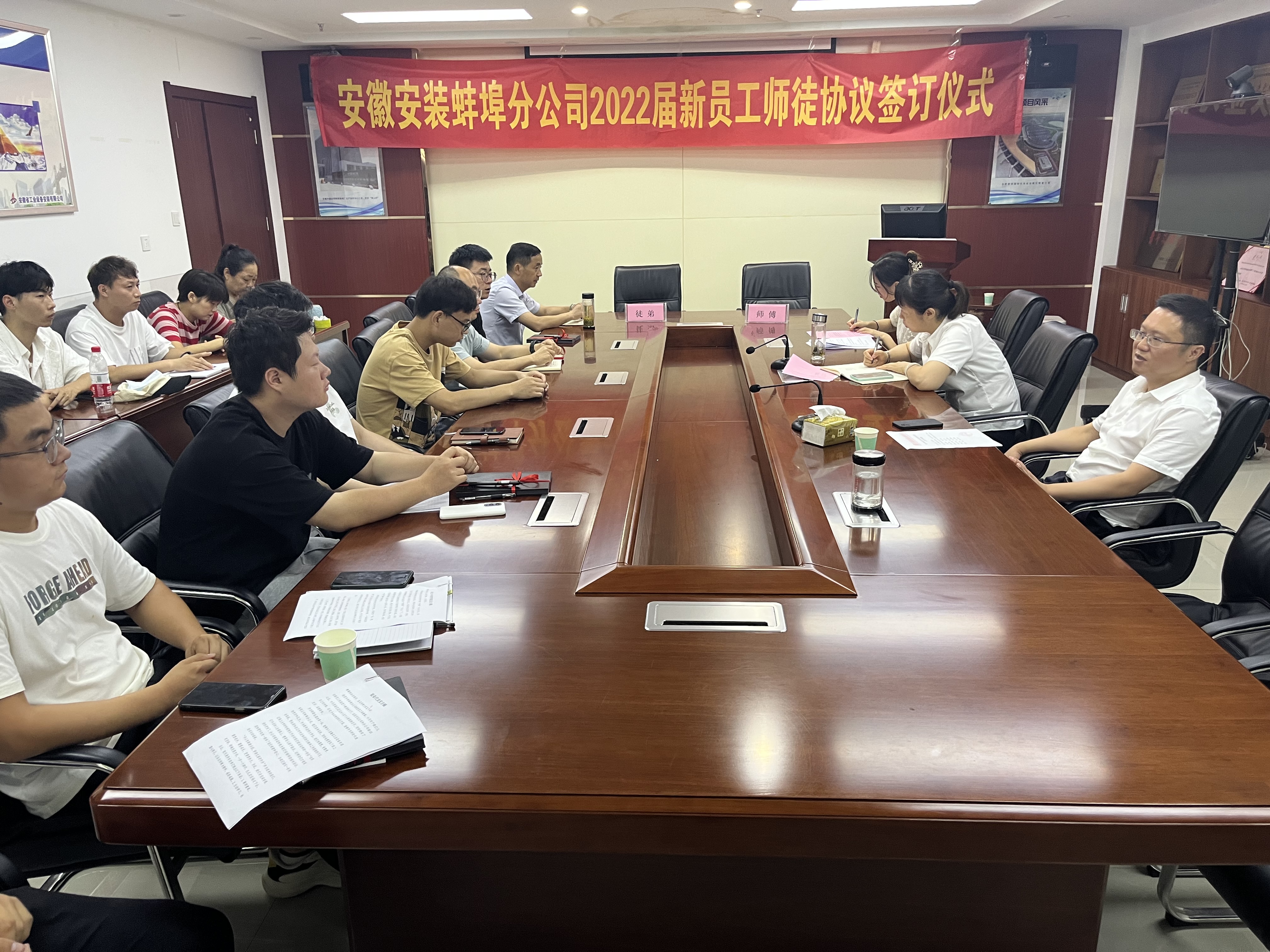 為使新員工盡快成長成才,加速人才培養(yǎng),加強(qiáng)分公司人才梯隊(duì)建設(shè)。7月15日下午,蚌埠分公司黨支部舉行了“2022屆新員工師徒結(jié)對”簽訂儀式。分公司黨政主要領(lǐng)導(dǎo)、部門負(fù)責(zé)人、項(xiàng)目經(jīng)理、六對結(jié)對師徒參加了此次會(huì)議。