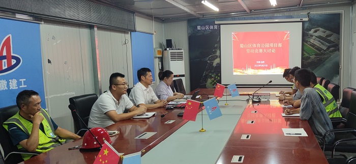 9月22日下午,市政分公司蜀山區(qū)體育公園安裝工程項目部在現(xiàn)場會議室組織開展了勞動競賽大討論,并舉行勞動競賽動員會,正式拉開項目勞動競賽序幕。分公司黨支部書記胡迎東出席會議,分公司工會副主席張曼主持會議,項目部全體管理人員及施工班組參會。