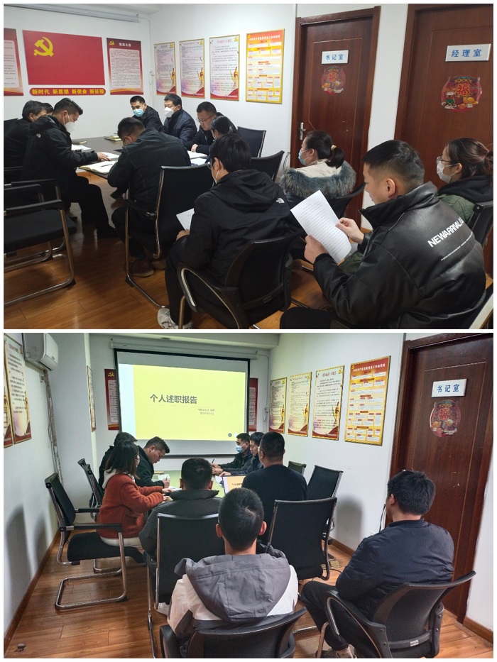 1月10日,分公司在會議室舉行了2022年度機關(guān)員工績效考核大會和機關(guān)部門負責(zé)人、項目經(jīng)理述職述廉大會。會上首先對機關(guān)部門及員工進行考核,每位員工對2022年度工作情況進行總結(jié)匯報,找出工作不足,明確新的一年改進和努力方向,部門負責(zé)人對本部門人員工作完成情況逐一進行點評。接著對分公司機關(guān)部門和部門負責(zé)人、項目經(jīng)理進行考核,分公司6名同志采用PPT的形式結(jié)合一年來的工作實際,從德、能、勤、績、廉五個方面進行工作述職,有總結(jié)、有不足、有改進措施、有思路打算。胡迎東在會上逐一進行了點評,在肯定工作成績的同時也指出需要改進之處。會上還發(fā)放考核測評表進行了現(xiàn)場測評。