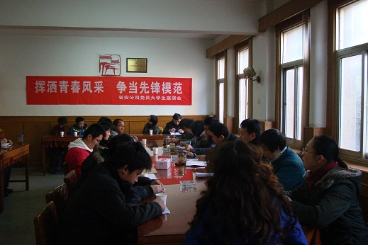 最后,戴書記聯(lián)系實際,就公司年輕大學(xué)生隊伍如何快速發(fā)展和發(fā)揮先鋒模范作用提出三點意見:一是年輕同志要著重從學(xué)習(xí)提高,實踐磨煉,作風(fēng)養(yǎng)成三個方面把握自身成長規(guī)律,不斷提升自己。二是結(jié)合科學(xué)發(fā)展觀,堅持以人為本,尤其是對有沖勁、有干勁的在職大學(xué)生多關(guān)懷,積極構(gòu)筑公司“人本管理”模式,把建設(shè)一支高素質(zhì)人才隊伍、黨員隊伍貫穿創(chuàng)先爭優(yōu)活動的始終。三是對在職大學(xué)生如何健康成長、快樂成才提出殷切希望:一要保持積極的心態(tài),要善于穩(wěn)定情緒,合理的進行自我減壓,主動與人有效溝通;二要保持務(wù)實的工作作風(fēng),踏實努力,加強執(zhí)行力的鍛煉;三要保持良好的形象,由內(nèi)而外的提升自己的素養(yǎng)。在新的一年里,希望大學(xué)生黨員在各自的崗位上率先垂范,彰顯風(fēng)采,把“揮灑青春風(fēng)采,爭當(dāng)先鋒模范”精神延伸到項目文化、企業(yè)文化和機關(guān)效能建設(shè)中去,為公司三個文明建設(shè)的進一步加強和未來三年大發(fā)展夯實思想、隊伍、管理基礎(chǔ),為公司的“十二五”發(fā)展貢獻力量。