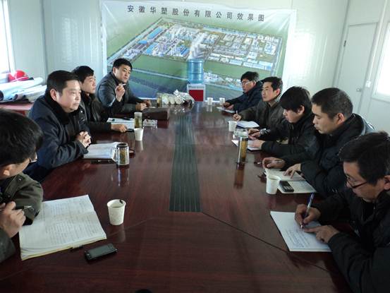 王總一行首先聽(tīng)取了安徽華塑項(xiàng)目部關(guān)于質(zhì)量、安全文明、施工進(jìn)度、工作目標(biāo)和下一步工作計(jì)劃的匯報(bào)。王總一行對(duì)安徽華塑項(xiàng)目部在開(kāi)工短短兩個(gè)月內(nèi)取得的成績(jī)給予充分肯定。王總特別指出,在工期緊、任務(wù)重、困難大的情況下,項(xiàng)目部一定要思想上重視,制定科學(xué)合理的方案,與施工各方進(jìn)行高效溝通,搶工期、保質(zhì)量、展風(fēng)采,為后續(xù)工程的承接創(chuàng)造有利條件。