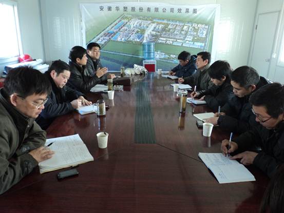 1月17日上午,公司總經(jīng)理王軍邦,副總經(jīng)理劉安俊,總經(jīng)理助理、生產(chǎn)管理處處長(zhǎng)包亞?wèn)|,經(jīng)理辦公室主任王勝利一行踏朔風(fēng)冒嚴(yán)寒親臨滁州分公司安徽華塑項(xiàng)目工地一線進(jìn)行調(diào)研、檢查指導(dǎo)工作。