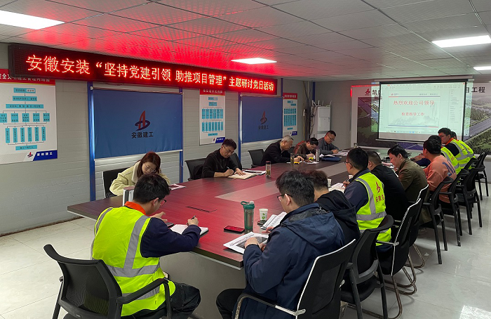 近日,安徽安裝公司黨委結(jié)合2023年一季度工程項(xiàng)目管理綜合檢查,到房建(裝飾)分公司阜南污水處理廠(chǎng)項(xiàng)目部和蚌埠分公司凱盛項(xiàng)目部組織開(kāi)展了“堅(jiān)持黨建引領(lǐng) 助推項(xiàng)目管理”主題研討黨日活動(dòng)。公司黨委辦公室、工程管理部(安全管理部)、物資管理部、招標(biāo)辦公室、所屬分公司及項(xiàng)目部班子成員參加了此次活動(dòng)。