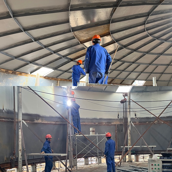 目前該項(xiàng)目ABR生化池主體結(jié)構(gòu)4米層池壁澆筑、池內(nèi)-1~0.6米層空心磚砌筑澆筑混凝土施工完成;調(diào)節(jié)罐安裝到第五帶板,電氣接地預(yù)埋施工完成;高密度沉淀池基礎(chǔ)筏板澆筑、污泥脫水框架基礎(chǔ)承臺(tái)混凝土澆筑完成,已順利完成總工程量的40%,實(shí)現(xiàn)了項(xiàng)目生產(chǎn)首季“開門紅”。