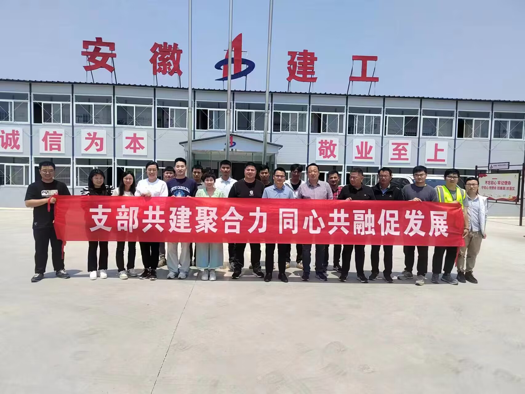 為進(jìn)一步夯實(shí)黨建工作基礎(chǔ),增進(jìn)支部間學(xué)習(xí)交流,促進(jìn)支部融合發(fā)展,增強(qiáng)基層黨建工作新動(dòng)力,5月12日,機(jī)關(guān)第二黨支部與房建(裝飾)分公司黨支部在阜南項(xiàng)目部開展支部共建活動(dòng),公司黨委副書記、副總經(jīng)理周正平以普通黨員身份參加此次活動(dòng)。