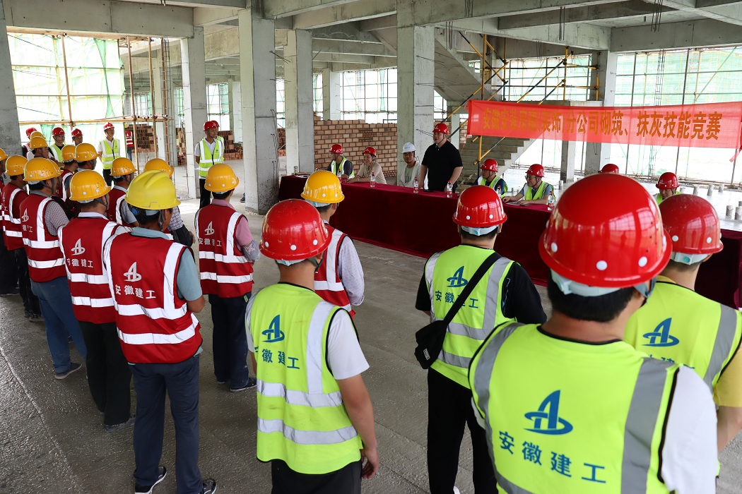 為深入學習宣傳貫徹習近平新時代中國特色社會主義思想和黨的二十大精神,大力弘揚工匠精神,厚植工匠文化,5月31日下午,房建(裝飾)分公司黨支部在阜南縣第一小學項目部舉行了“學思踐悟二十大 崗位比武促發(fā)展”砌筑、抹灰技能大賽活動。來自項目各勞務(wù)單位的14組參賽隊伍,20多名工人代表參加比賽。比賽邀請公司總工辦及分公司領(lǐng)導班子成員和部分項目經(jīng)理擔任評委。
