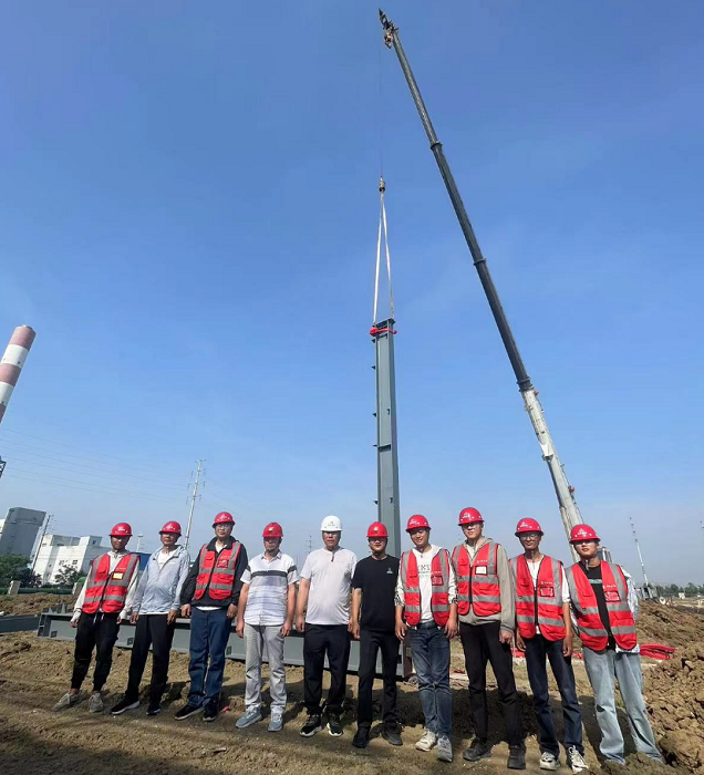 丙類車間鋼架順利開吊是該工程一個(gè)重要里程碑節(jié)點(diǎn)。為確保進(jìn)展順利,吊裝前,項(xiàng)目部組織專業(yè)人員對(duì)吊裝方案、安全措施、質(zhì)量標(biāo)準(zhǔn)、起吊機(jī)械等進(jìn)行詳細(xì)審查,開展現(xiàn)場土建交付安裝前的條件確認(rèn),項(xiàng)目經(jīng)理現(xiàn)場指揮,安全管理人員全程監(jiān)控,保證鋼結(jié)構(gòu)吊裝能夠高標(biāo)準(zhǔn)開吊,為后續(xù)安裝工作奠定堅(jiān)實(shí)基礎(chǔ)。