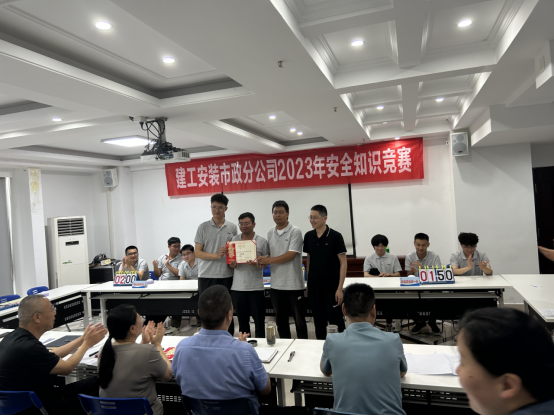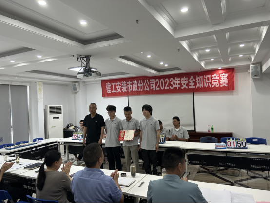 本次競賽分為預賽和決賽兩輪,題型設(shè)有必答、搶答、風險答題三類,來自分公司機關(guān)和項目部組成的5支參賽代表隊積極參賽,整個競賽過程氣氛熱烈,賽序井然。選手們沉著冷靜、機智應戰(zhàn),各隊之間你追我趕、互不示弱,使得整個競賽過程既緊張又充滿了樂趣,掌聲和叫好聲接連不斷,比分與情緒交替攀升。經(jīng)過激烈角逐,下塘商業(yè)街項目部代表隊力壓群雄,最終取得本次競賽第一名。