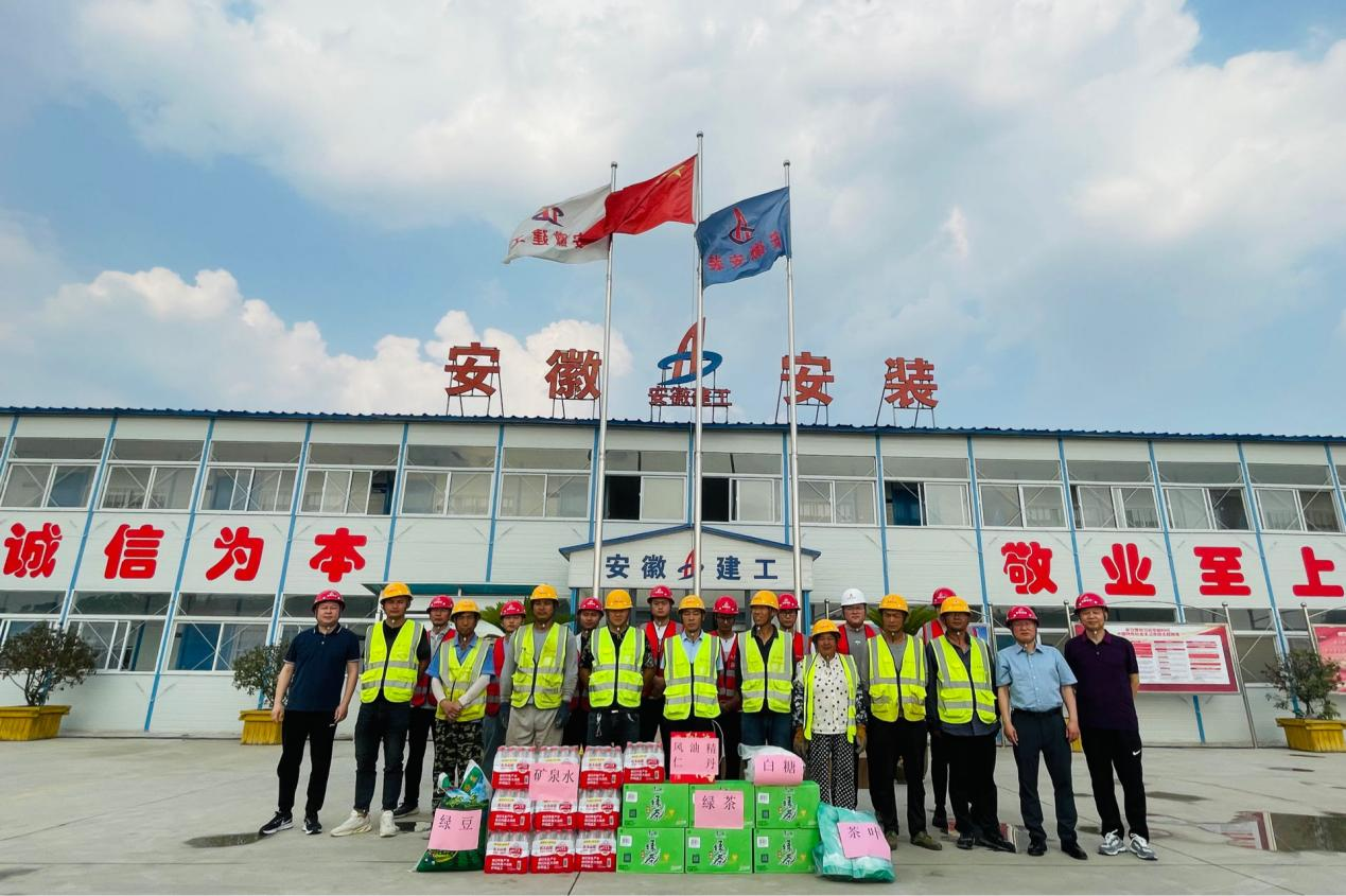 近日高溫來襲,為做好夏季高溫作業(yè)勞動保護(hù)工作,6月13日下午,蚌埠分公司經(jīng)理、黨支部副書記趙銘亮,黨支部書記、副經(jīng)理王偉,副經(jīng)理趙榮珣前往輝隆項目部開展送清涼慰問活動,為項目部管理人員和工人們免費(fèi)發(fā)放防暑降溫清涼物資。