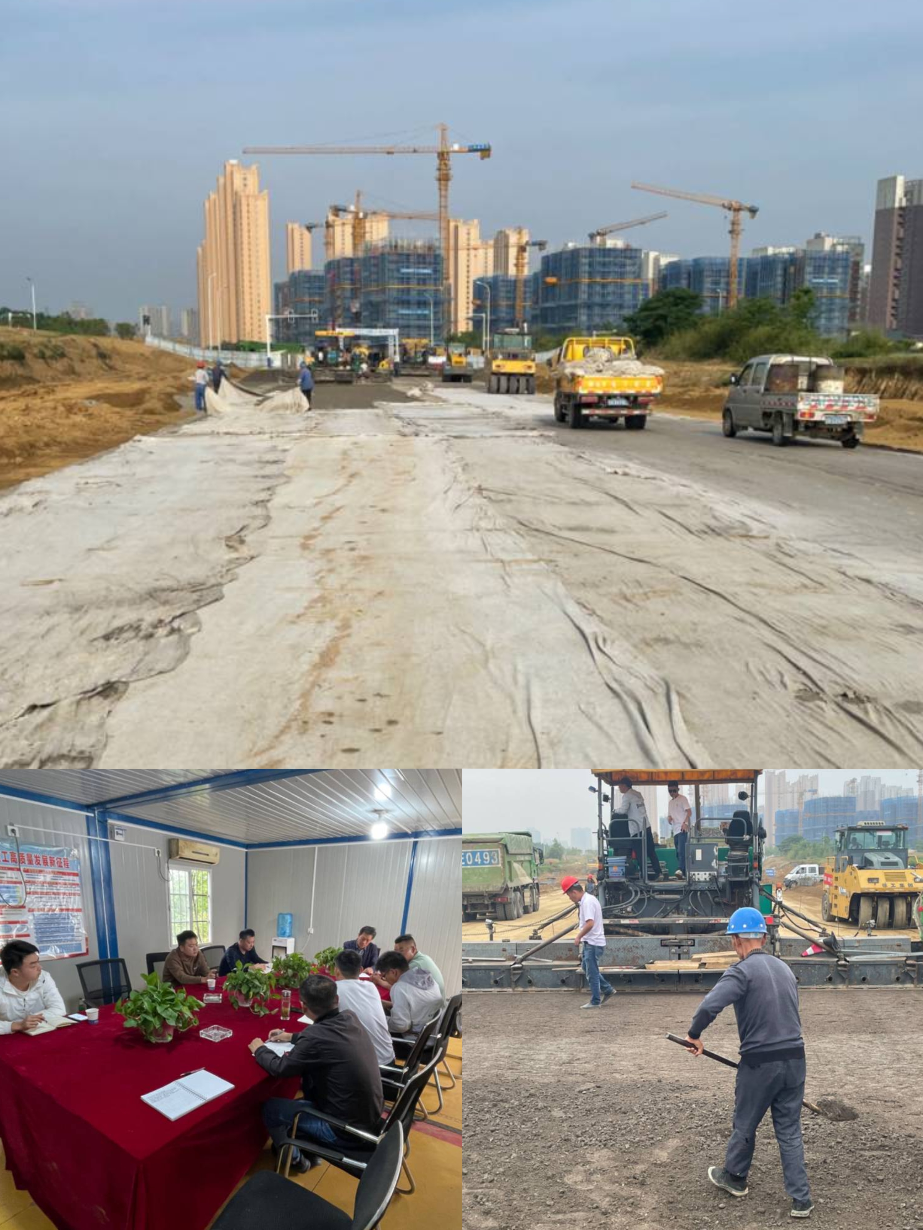 為確保鋪筑質(zhì)量,項目部提前制定施工計劃,召開專題會議;同時嚴(yán)把原材料關(guān),對施工機械、技術(shù)措施、作業(yè)環(huán)境、防控手段等方面存在的不足進(jìn)行了全面排查整改,并圍繞工藝工法、技術(shù)標(biāo)準(zhǔn)、安全環(huán)保施工等方面進(jìn)行教育培訓(xùn)和技術(shù)交底,這一系列的有力舉措為試驗段的成功開鋪奠定了堅實基礎(chǔ)。