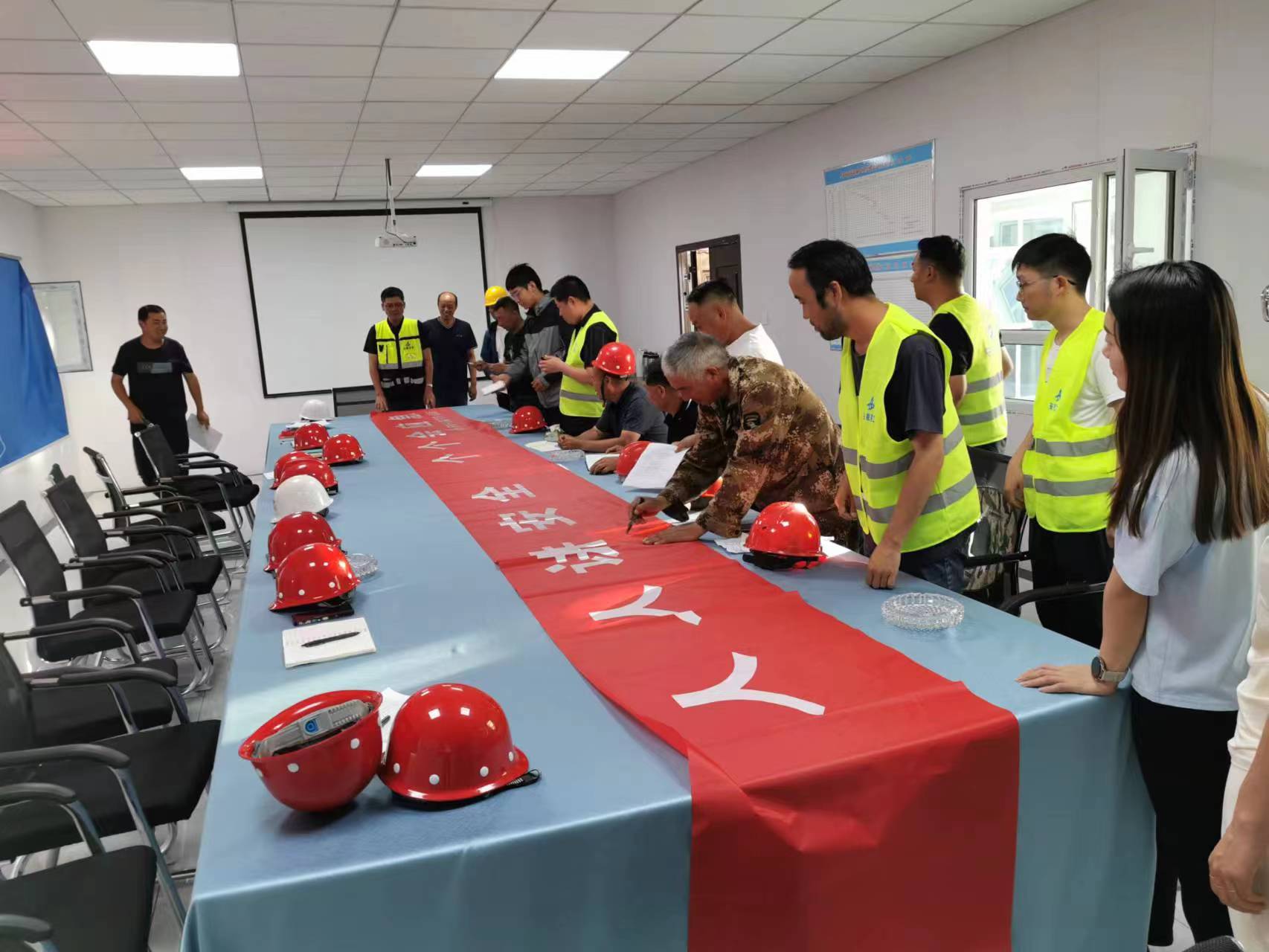 啟動儀式上,項目部安全員向大家宣讀此次安全月活動的活動方案,播放安全教育、警示類視頻,并著重講解施工現(xiàn)場及生活區(qū)一些常見而易忽視的安全隱患及防范措施,提升管理人員在面對風(fēng)險時的安全意識,并指出確保安全是各類生產(chǎn)活動的首要任務(wù),全員要樹立安全第一、生命至上的理念。分公司所屬項目部管理人員要嚴(yán)格落實安全生產(chǎn)責(zé)任制,樹牢安全紅線意識,通過宣傳教育、實戰(zhàn)演練、隱患排查等方式,讓分公司全體員工和所屬項目所有參建人員更積極主動參與到各項安全生產(chǎn)活動中來,清楚各自在安全體系管理中的責(zé)任及意義,努力營造一個“人人要安全、人人管安全”的良好安全管理氛圍,提升分公司安全管理水平。在儀式的最后,所有人員在安全員的帶領(lǐng)下莊嚴(yán)宣誓,并在印有“人人講安全,個個會應(yīng)急”的橫幅上進(jìn)行安全承諾簽名。