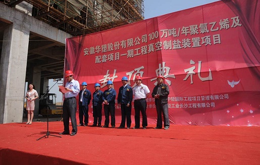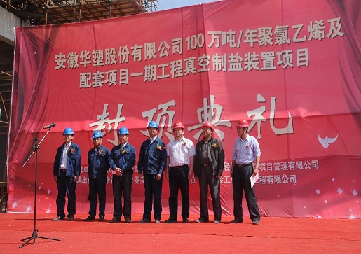 2011年4月28日,安徽省工業(yè)設(shè)備安裝公司滁州分公司承建的安徽華塑項目工程施工現(xiàn)場,到處場洋溢著一片祥和、喜慶的氣氛。上午10:18分,迎來了安徽華塑真空制鹽鹽硝車間土建主體結(jié)構(gòu)封頂儀式。公司總經(jīng)理王軍幫、副總經(jīng)理劉安俊,華塑公司黨委書記黃家發(fā)、 副總經(jīng)理梁東風,北京中輕國際工程管理有限公司現(xiàn)場總監(jiān)郭均川等領(lǐng)導(dǎo)應(yīng)邀出席了封頂儀式。本工程從開工到土建主體結(jié)構(gòu)封頂,在質(zhì)量、安全、進度等方面受到了業(yè)主和監(jiān)理單位的一致好評,并獲得華塑園區(qū)二十多家施工單位綜合評比第二名得好成績。真空制鹽主體結(jié)構(gòu)施工進度上創(chuàng)造了全國最短時間,為公司在今后進一步占領(lǐng)鹽化工程市場打下了堅實的基礎(chǔ)。