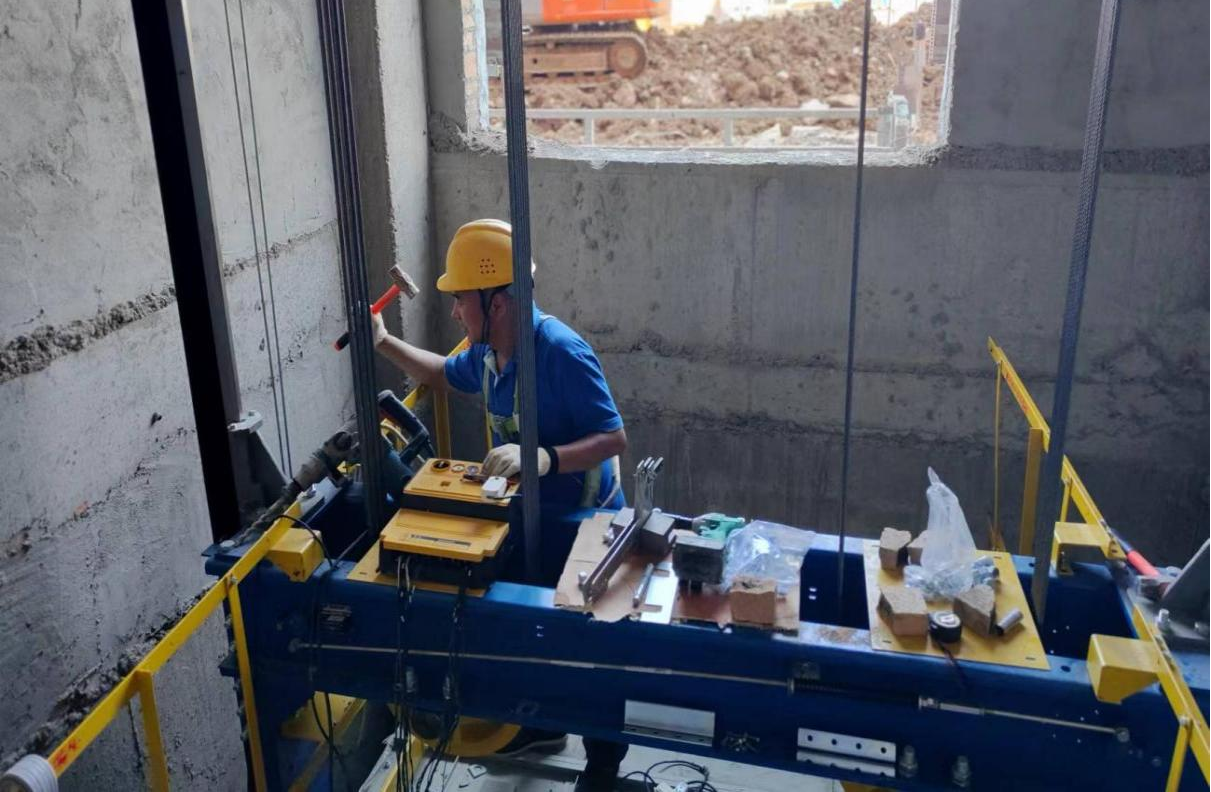 五河?xùn)|凌府邸二期電梯安裝工程項目,共計25臺垂直電梯。目前,25臺電梯已全部到貨,其中11臺已安裝完工,14臺正在安裝導(dǎo)軌、拼裝轎廂以及安裝層門,預(yù)計8月底全部安裝完工。