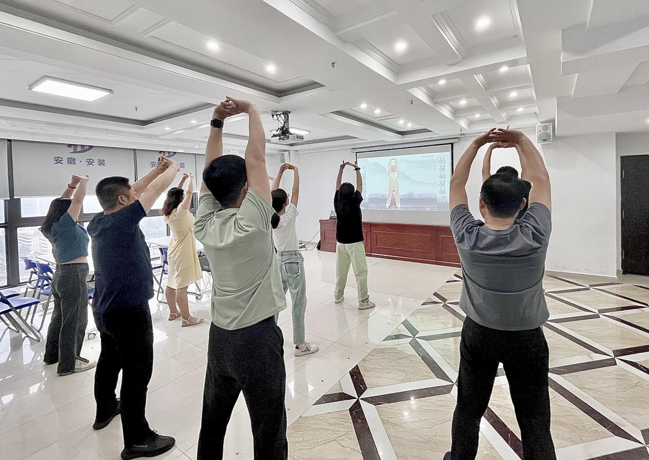 分公司組織開展“體檢中常見三大結(jié)節(jié)”健康知識講座。讓大家樹立新的健康理念,增強(qiáng)自我保健意識,更好地工作和幸福地生活。為提高健身意識,培養(yǎng)良好健身習(xí)慣,近期分公司還組織大家利用午休空閑時(shí)間開展練習(xí)八段錦等健康有益的健身活動,幫助大家在繁忙工作之余能強(qiáng)身健體。