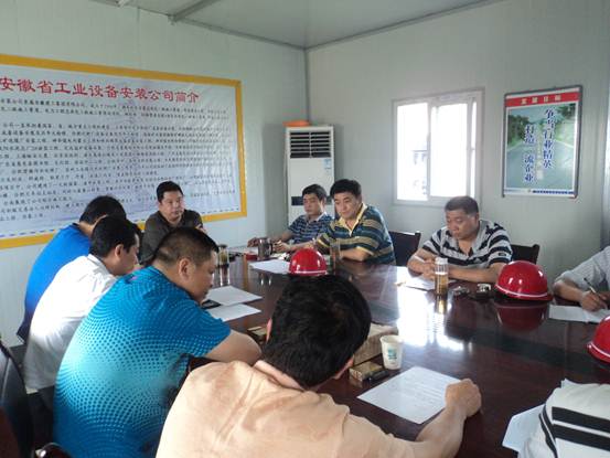 項目部土建、安裝負責人對現(xiàn)階段的工程進展、質(zhì)量、安全情況進行了匯報,滁州分公司副經(jīng)理、該項目總負責李多德對資金回收及下一步安裝工作做了具體匯報。