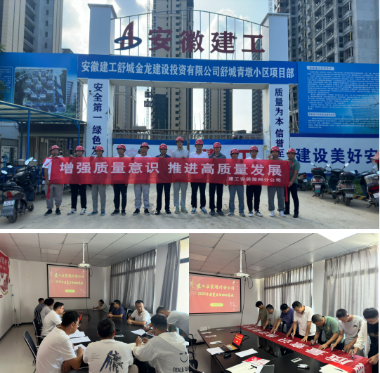 為落實好2023年全國“質(zhì)量月”活動要求,近日,建工安裝滁州分公司分別在舒城片區(qū)項目、光明徐小牧場、阜南污水處理廠等項目陸續(xù)舉辦了2023年“質(zhì)量月”活動啟動儀式。分公司領(lǐng)導(dǎo)班子成員、分公司相關(guān)部門負(fù)責(zé)人、項目部全體人員參加了啟動儀式。