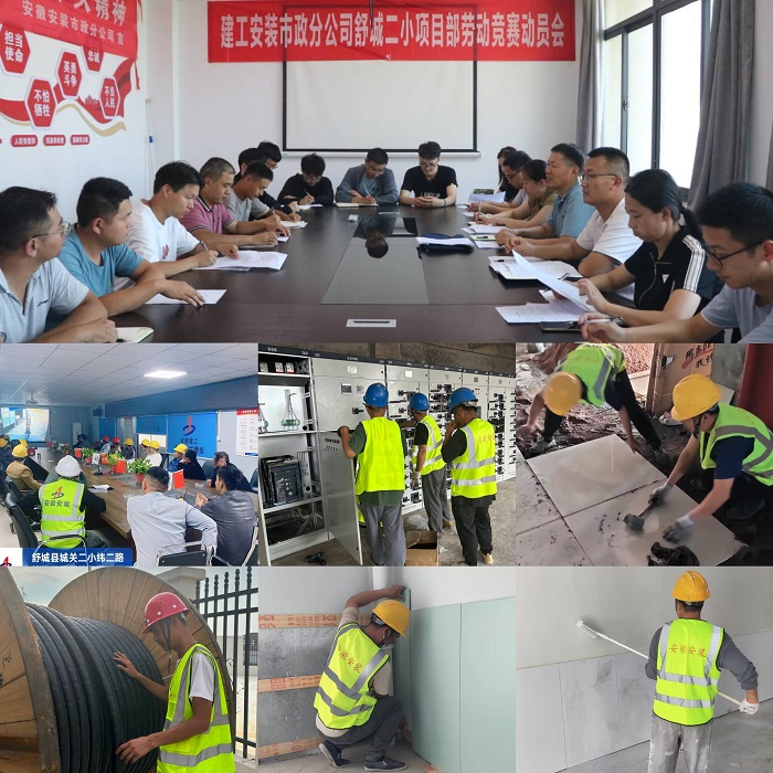 七月驕陽似火,工程也進入了最后決戰(zhàn)的關鍵時刻。為奏響夏日大干“進行曲”,吹響建設攻堅“沖鋒號”,舒城二小項目部圍繞外強電專業(yè)分包工程適時開展了“當好主人翁 建功大發(fā)展”大干20天主題勞動競賽活動。為確保按時完成競賽目標任務,項目部參建人員統(tǒng)一思想認識,堅定信心、攻堅克難、日夜奮戰(zhàn),抓細抓實施工過程管控,按照競賽方案設立的節(jié)點目標,細化工作任務,保證人、財、物等各項資源配置,在保證工程安全質量的前提下,爭分奪秒地加快項目建設進度。當施工進入炎炎烈日當空、高溫酷暑難耐的盛夏時節(jié),為確保施工不間斷,項目部管理人員和一線工人始終堅守工作崗位、不下火線,他們緊盯各工序時間節(jié)點和目標任務,延長早間、夜間作業(yè)時間,按進度找差距、補短板,確保各項節(jié)點目標按時按質完成;同時項目部做好現(xiàn)場防暑降溫各項措施,為一線員工們送去夏日“清涼”和加班生活物資,確保安全施工不松懈、后勤生活有保障。在勞動競賽過程中,項目部科學組織、合理分工、搶抓進度,全體干部職工勇于擔當作為,大干快上,創(chuàng)造了一個又一個“不可能”,7月20日前完成全部電纜敷設,7月30日前完成環(huán)網(wǎng)柜安裝和電力系統(tǒng)調試,如期為項目送上了電,圓滿完成了競賽目標。