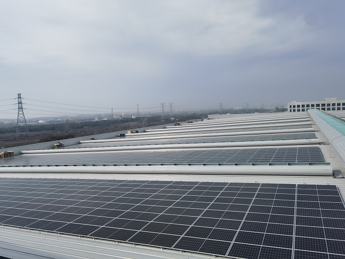 安徽建工交通智造基地4.96MW屋面分布式光伏項目是安徽建工“自投自建”的第一座光伏電站,也是六安市現有最大的分布式光伏電站。項目裝機容量為4.96MWp,采用“自發(fā)自用、余電上網”的模式并網發(fā)電。電站運營期為25年,經測算該站年均發(fā)電量約為480萬kwh,25年總發(fā)電量約1.2億kwh,可為企業(yè)減少電費支出約1350萬元,同時減少二氧化碳排放12萬噸。