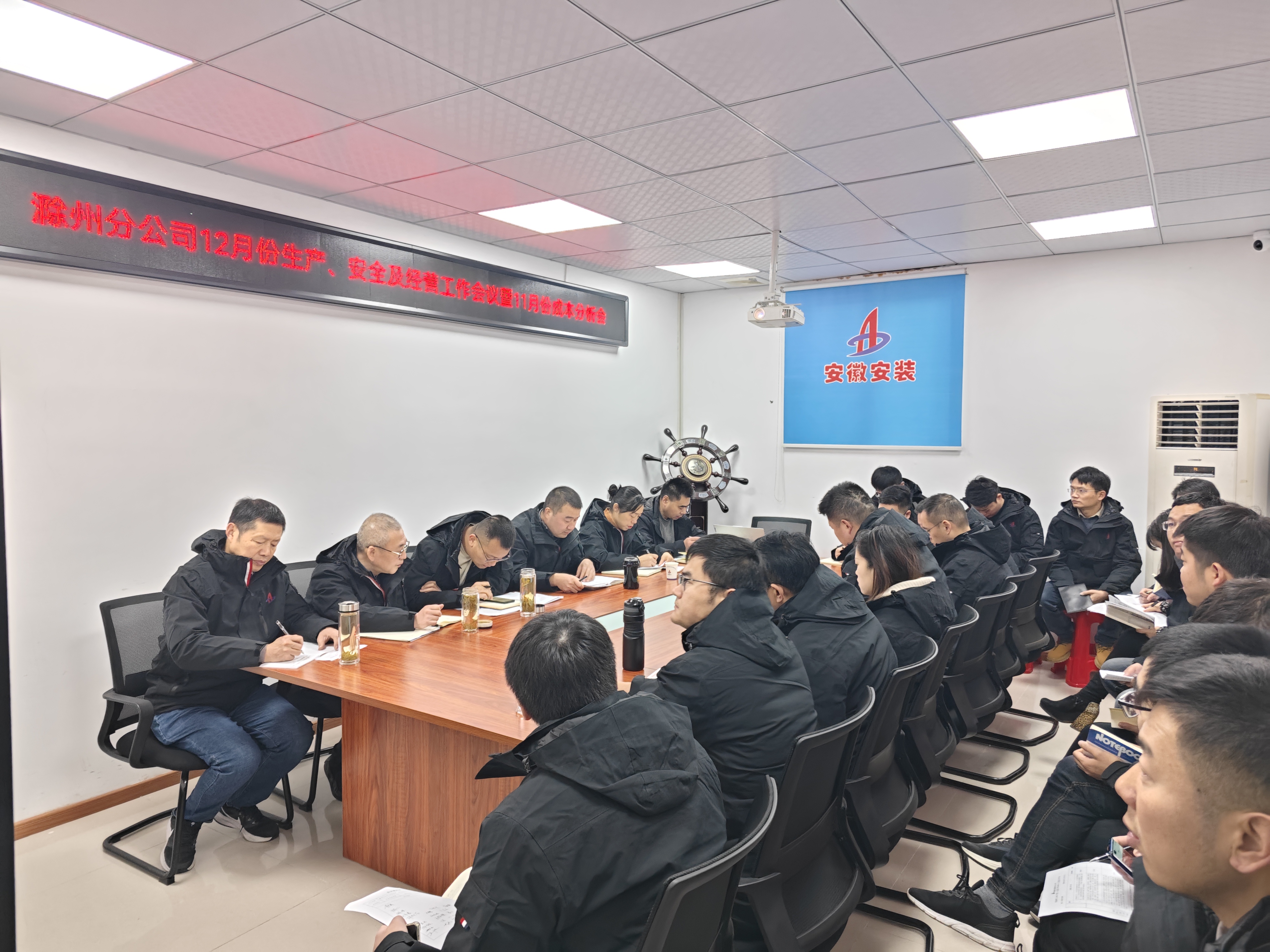 2023年12月29日上午,建工安裝滁州分公司組織召開12月份生產(chǎn)、安全、經(jīng)營暨成本分析會。分公司領(lǐng)導(dǎo)班子成員、各部門負(fù)責(zé)人、項目負(fù)責(zé)人及工程管理部全體員工參加會議,會議由分公司副經(jīng)理張漢軍主持。