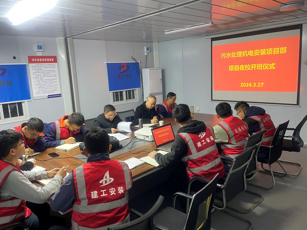 為加強項目人才隊伍建設,進一步提升項目團隊專業(yè)化水平,著力培養(yǎng)符合項目管理實際的復合型人才,打造學習型項目部,3月27日晚,蚌埠污水處理站項目“夜?!睂W習班正式開班,建工安裝蚌埠分公司經(jīng)理、黨支部副書記趙銘亮為項目夜校開班進行了動員并親自授課,項目部全體人員參加。