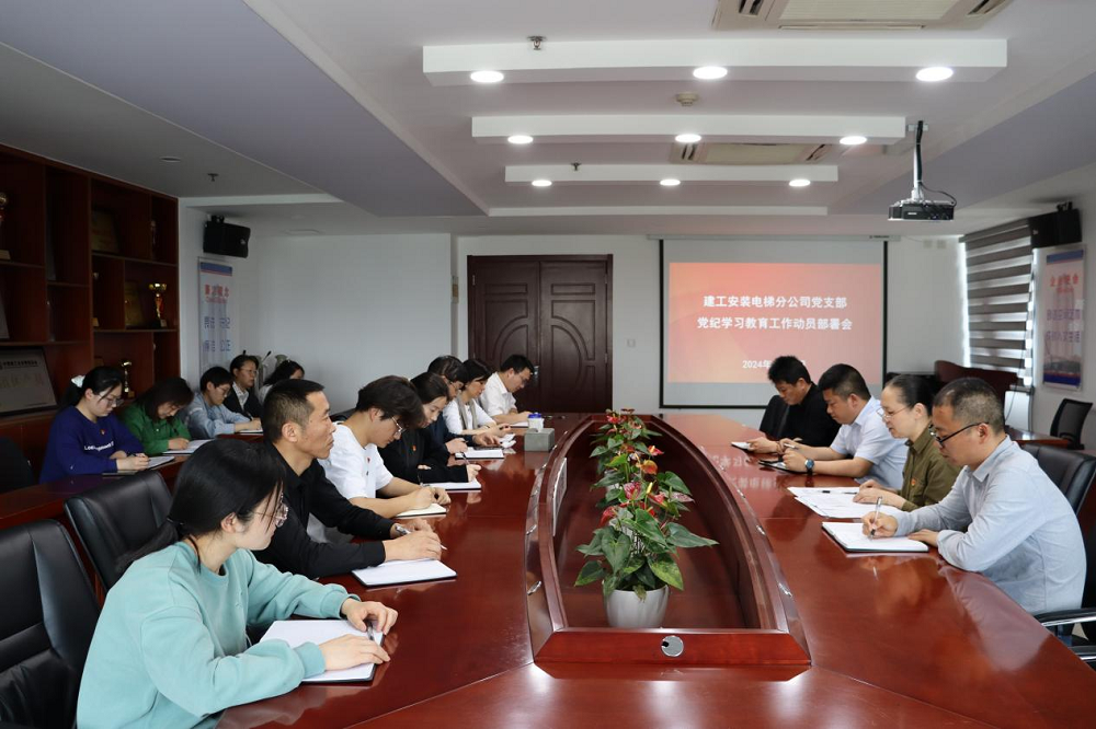 4月25日上午,建工安裝電梯分公司召開黨紀學習教育動員部署會,分公司黨支部書記姚春靜主持會議,分公司領導班子成員、全體黨員、在肥員工參加會議。