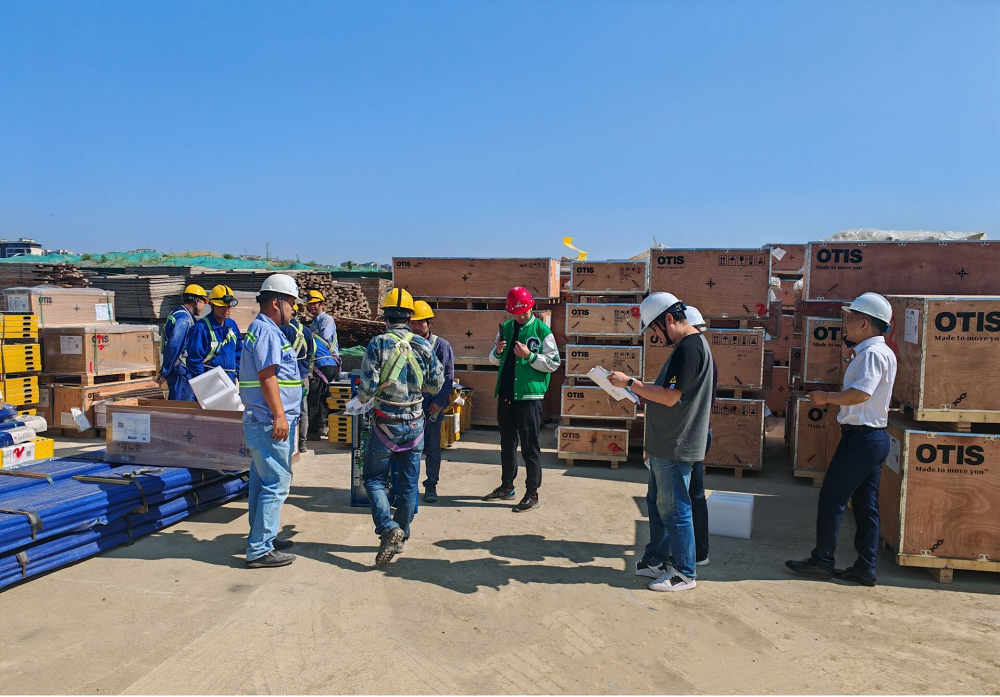派河印象杏語林溪項(xiàng)目預(yù)計(jì)安裝74臺(tái)電梯,為了確保電梯安裝項(xiàng)目進(jìn)度,項(xiàng)目部提前部署規(guī)劃,合理安排施工工期,該圖為項(xiàng)目部在進(jìn)行現(xiàn)場安全技術(shù)交底。