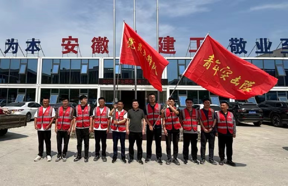 為引導、鼓勵項目以黨員先鋒隊為榜樣,以青年突擊隊為標桿,充分發(fā)揮項目一線基層黨組織戰(zhàn)斗堡壘作用和青年人在工程建設中的生力軍的作用,推動黨、團組織建設全面覆蓋全面過硬,蚌埠分公司黨支部和團支部先后在蚌埠污水處理廠項目部及宿州深巖化工項目部舉行了“黨員先鋒隊”、“青年突擊隊”授旗儀式。