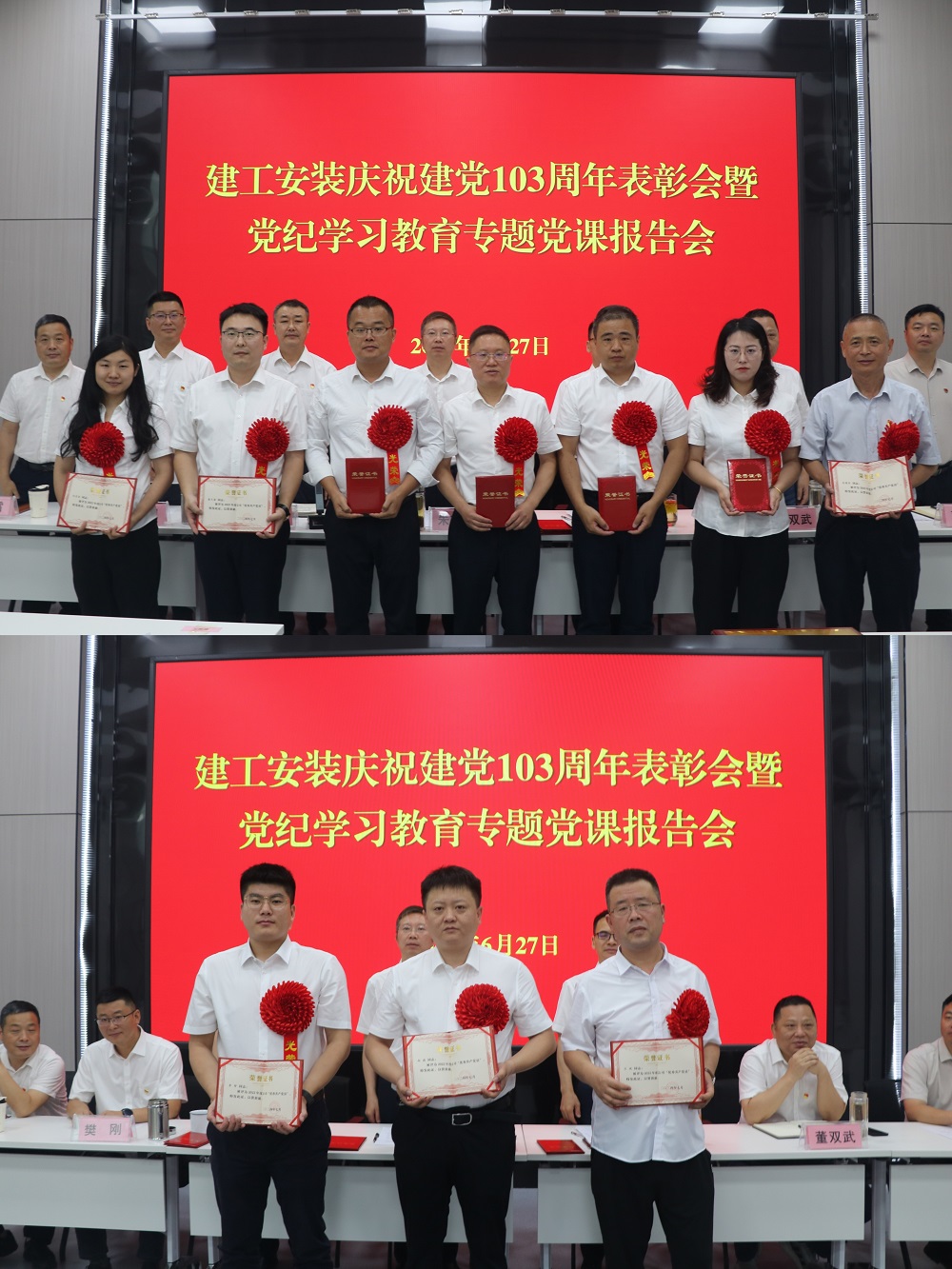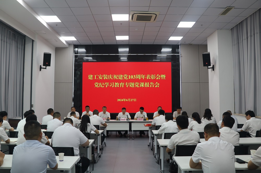 為慶祝中國共產(chǎn)黨成立103周年,扎實推進黨紀學(xué)習(xí)教育走深走實。6月27日上午,建工安裝黨委召開慶祝建黨103周年表彰會暨黨紀學(xué)習(xí)教育專題黨課報告會。公司領(lǐng)導(dǎo)班子成員出席會議,會議由公司黨委副書記、副總經(jīng)理周正平主持。