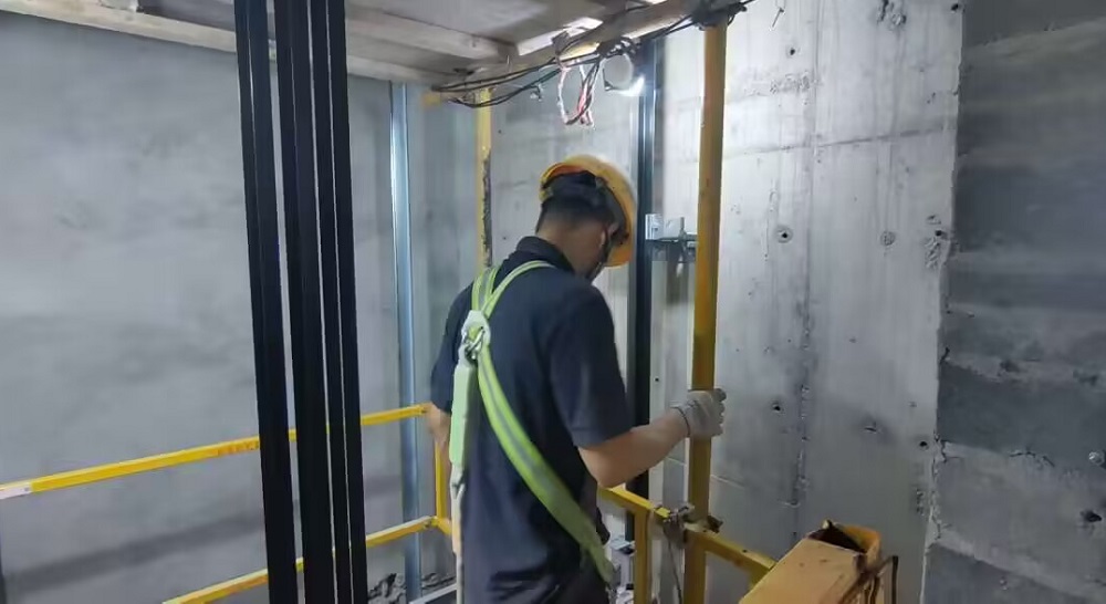 現(xiàn)場(chǎng)施工人員正在轎頂進(jìn)行安裝