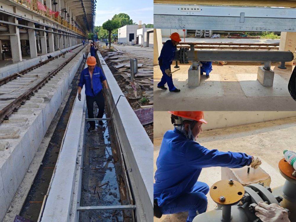 安慶石化新增鐵路接卸純苯設(shè)施項(xiàng)目,土建項(xiàng)目已基本完工,現(xiàn)剩余整體道床排水溝和兩側(cè)回填混凝體澆筑、控制室內(nèi)裝飾裝修等工作;設(shè)備安裝部分完成安裝六臺換熱器、六臺鶴管,預(yù)計(jì)九月底完工。圖為道床混凝土澆筑和換熱器安裝。