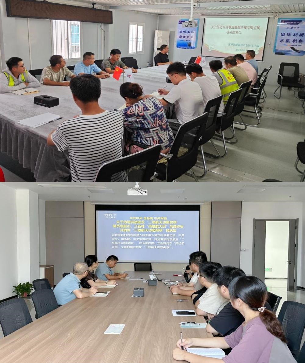 學(xué)習(xí)中,分公司機(jī)關(guān)和各項(xiàng)目部分別集中觀看了中共中央、國(guó)務(wù)院、中央軍委《關(guān)于給湯洪波頒發(fā)“二級(jí)航天功勛獎(jiǎng)?wù)隆?nbsp;授予唐勝杰、江新林“英雄航天員”榮譽(yù)稱號(hào)并頒發(fā)“三級(jí)航天功勛獎(jiǎng)?wù)隆钡臎Q定》網(wǎng)絡(luò)視頻。