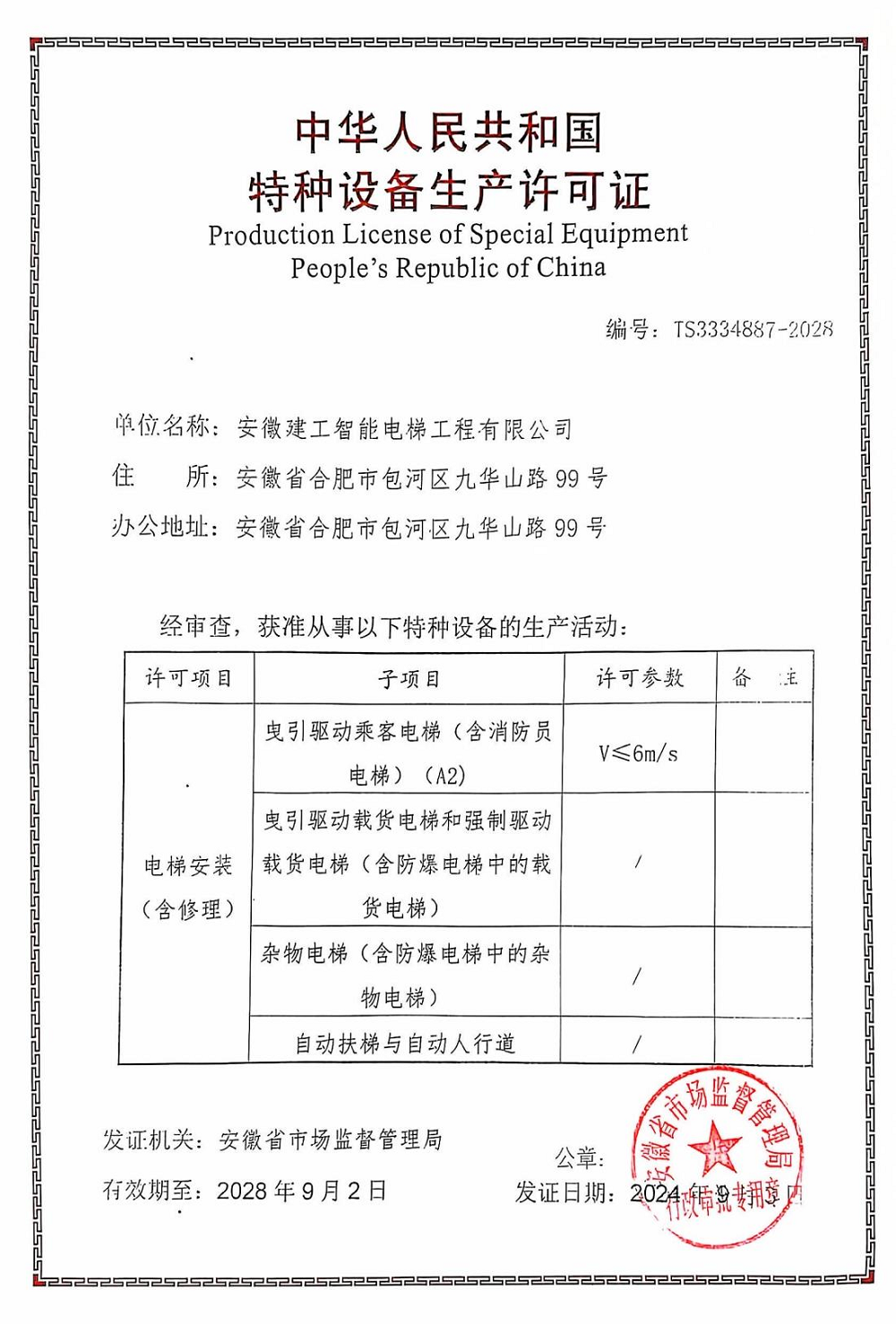 近日,經(jīng)安徽省市場(chǎng)監(jiān)督管理局核準(zhǔn),安徽建工智能電梯工程有限公司順利取得特種設(shè)備生產(chǎn)許可證,喜獲電梯安裝(含修理)A2級(jí)資質(zhì)。