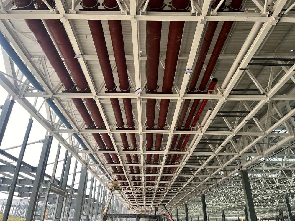 “優(yōu)方案”,項(xiàng)目部根據(jù)現(xiàn)場實(shí)際情況提前優(yōu)化吊裝施工方案,加快冷凍水管道安裝速度;并根據(jù)現(xiàn)場吊裝孔洞,轉(zhuǎn)變思路,定制8米螺旋焊管,大大加快了吊裝施工進(jìn)度。