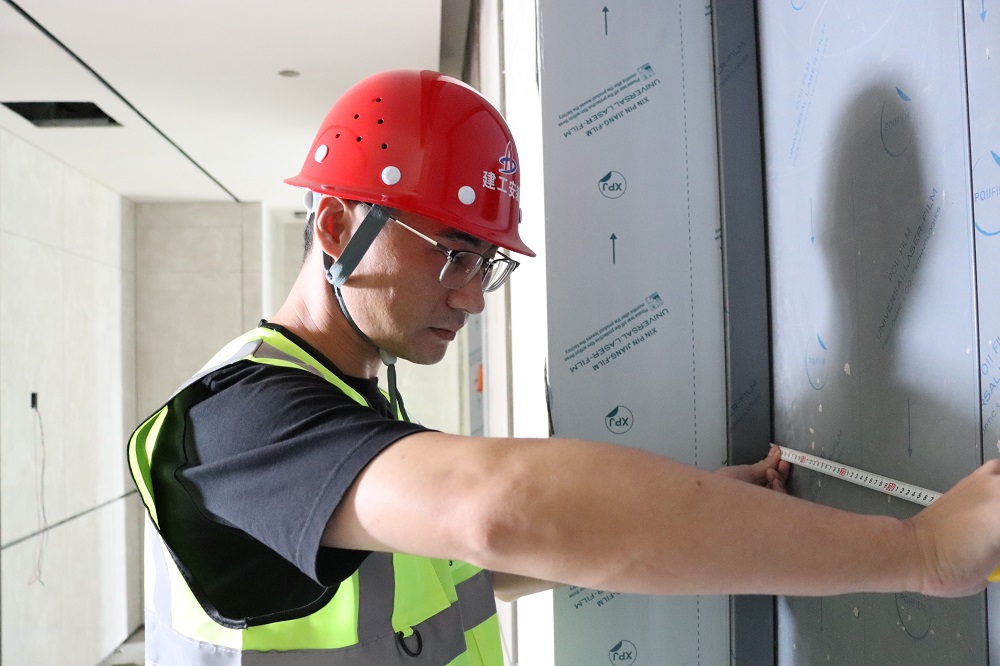 肥西縣鄉(xiāng)村文化旅游配套提升項(xiàng)目,技術(shù)負(fù)責(zé)人,湯楊,正在核查廳門安裝精度。丈量每一寸,精準(zhǔn)每一毫,奮楫篤行,臻于至善,一路走來淌下的汗水,是對(duì)工作的熱愛與堅(jiān)守。我在項(xiàng)目堅(jiān)守,我為祖國(guó)慶生。