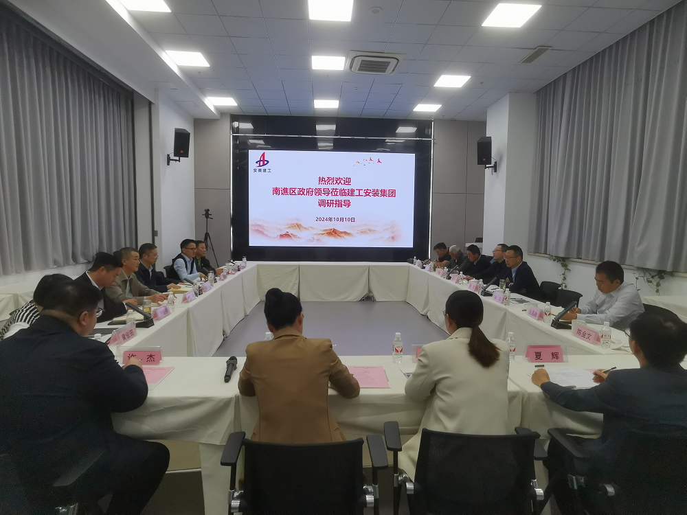 10月10日下午,滁州市南譙區(qū)委常委、常務副區(qū)長吳磊,副區(qū)長謝飛等一行蒞臨建工安裝調(diào)研指導,公司黨委書記、董事長朱珍宏熱情接待,并舉行工作座談會。