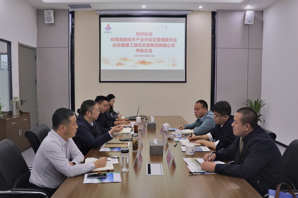 會上,朱珍宏重點介紹了安徽建工集團三大戰(zhàn)略布局基本情況以及建工安裝集團發(fā)展歷程、業(yè)務(wù)范圍、核心競爭優(yōu)勢等;方浩亮分享了蚌埠高新區(qū)和自貿(mào)區(qū)在電子信息、高端制造和新材料新能源等領(lǐng)域所取得的成就與獨特技術(shù)優(yōu)勢。雙方重點圍繞產(chǎn)業(yè)投資、園區(qū)建設(shè)、技術(shù)創(chuàng)新、光伏儲能方面充分交換意見,為下一步合作打下堅實的基礎(chǔ)。