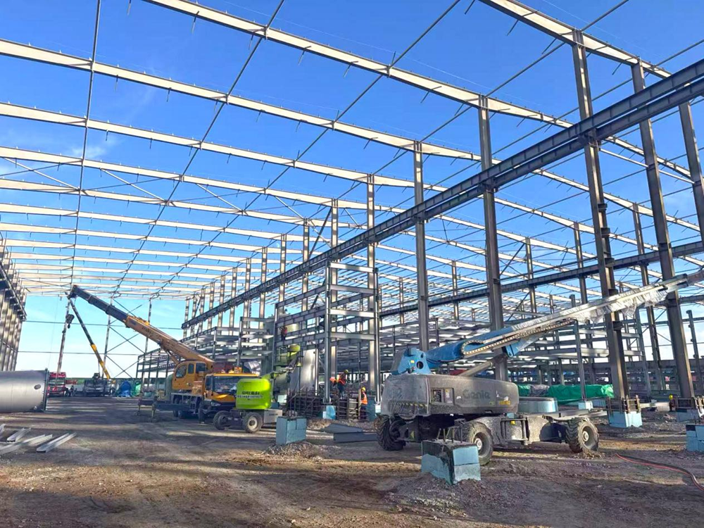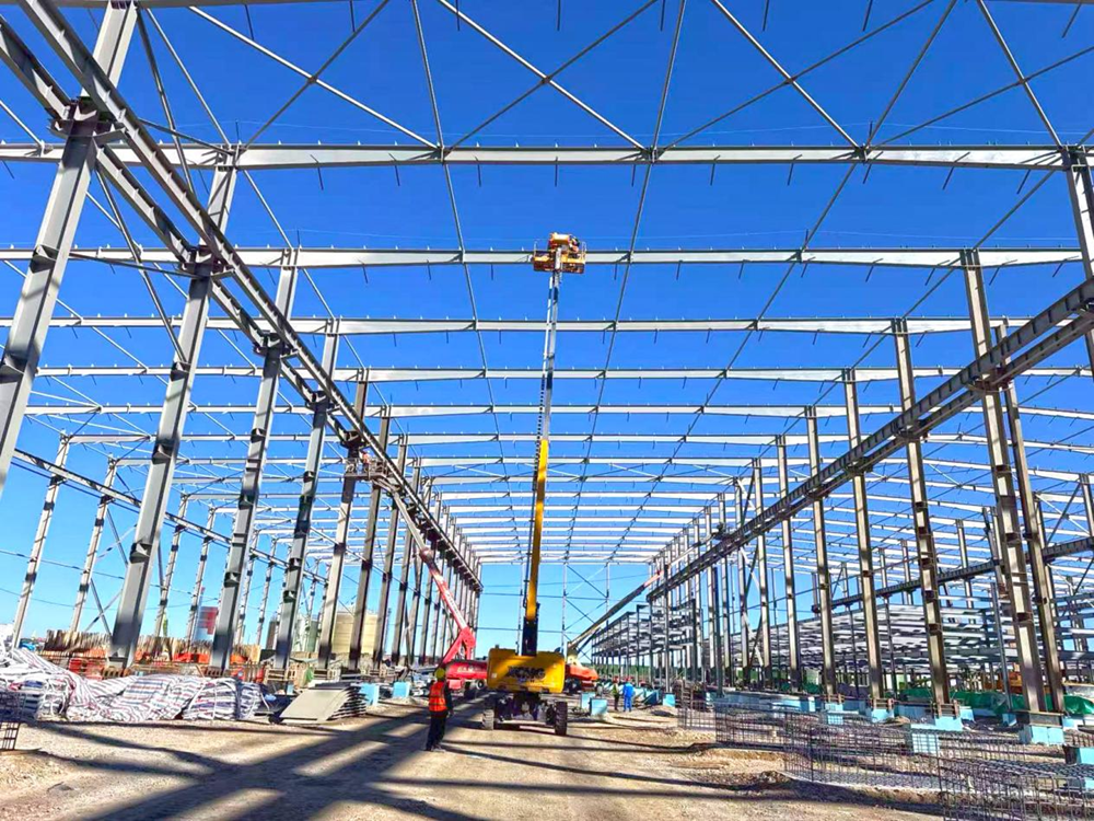 吊車的“長臂”在空中伸展、曲臂車在鋼架間頻繁升降、工程車在場地上來回穿梭、工人們忙碌的身影隨處可見,敲擊聲此起彼伏……針對當前重點建設任務,項目部精細部署,組織施工力量、細化節(jié)點安排、調(diào)配人機資源,鼓足干勁、狠抓安全、緊扣進度、全員發(fā)力,克服高海拔的特殊施工環(huán)境和偏遠地區(qū)的資源保障困難,項目部提出了“奮戰(zhàn)兩月 決勝年末”的戰(zhàn)斗口號,以“拼”的姿態(tài),“搶”的速度,全力沖刺12月底確保完成廠房封閉目標節(jié)點。