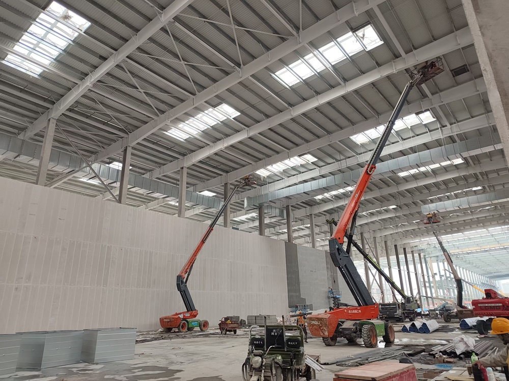 截至目前,車間一B區(qū)焊裝車間內的給排水管道、消防管道、暖通風管、空調水管、虹吸雨水、630循環(huán)水管均全部安裝完成,已全面進入試壓階段。正在進行車間一沖壓車間及QA樓安裝工作,電氣系統(tǒng)進入電纜放線安裝階段,暖通系統(tǒng)進入風口風閥安裝階段。