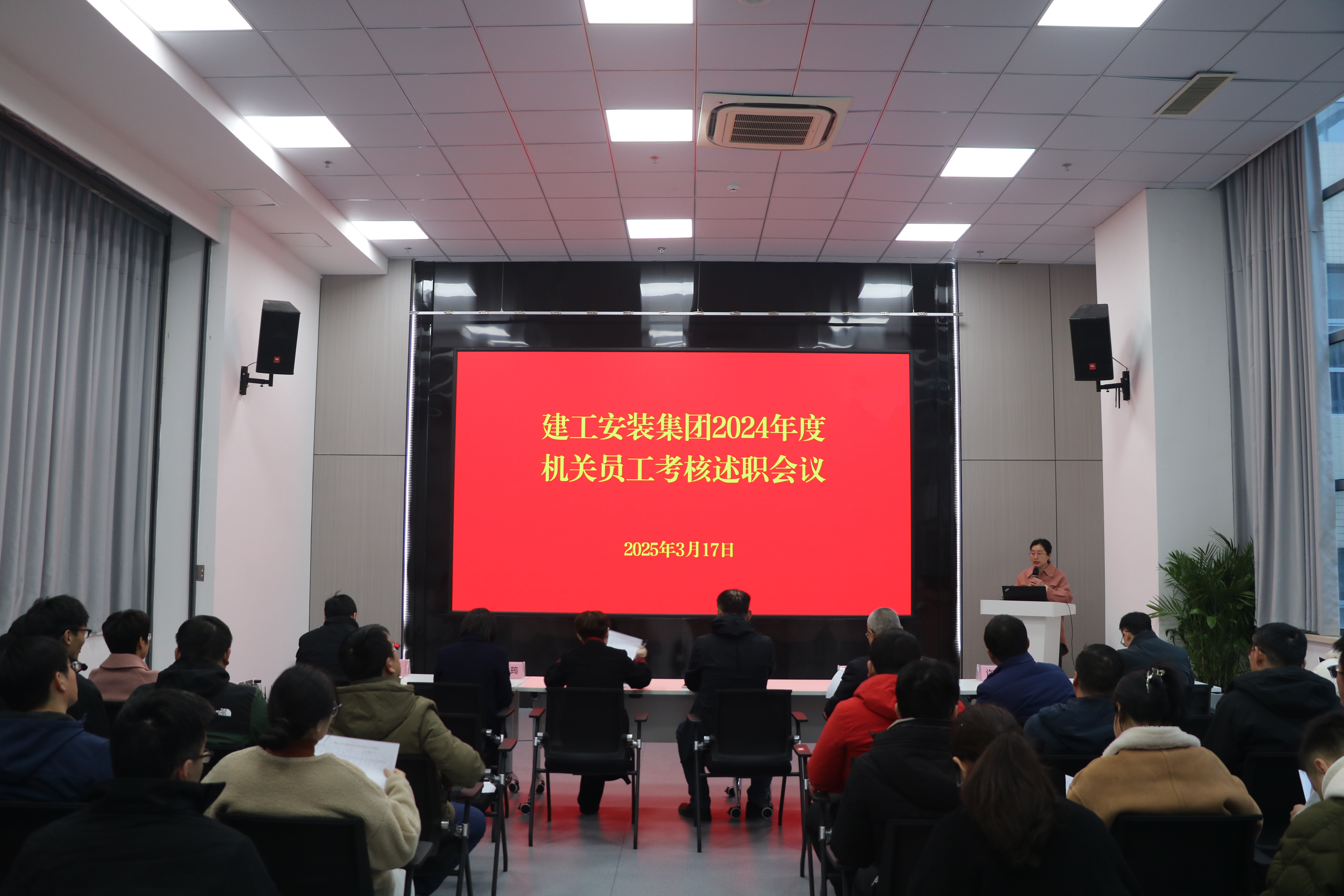 為全面總結(jié)2024年度工作成效,強(qiáng)化隊(duì)伍建設(shè),提升履職能力,建工安裝集團(tuán)于3月17日下午在機(jī)關(guān)第一會議室召開2024年度機(jī)關(guān)員工述職考核會議。機(jī)關(guān)部門正副職及全體員工50余人參加會議。