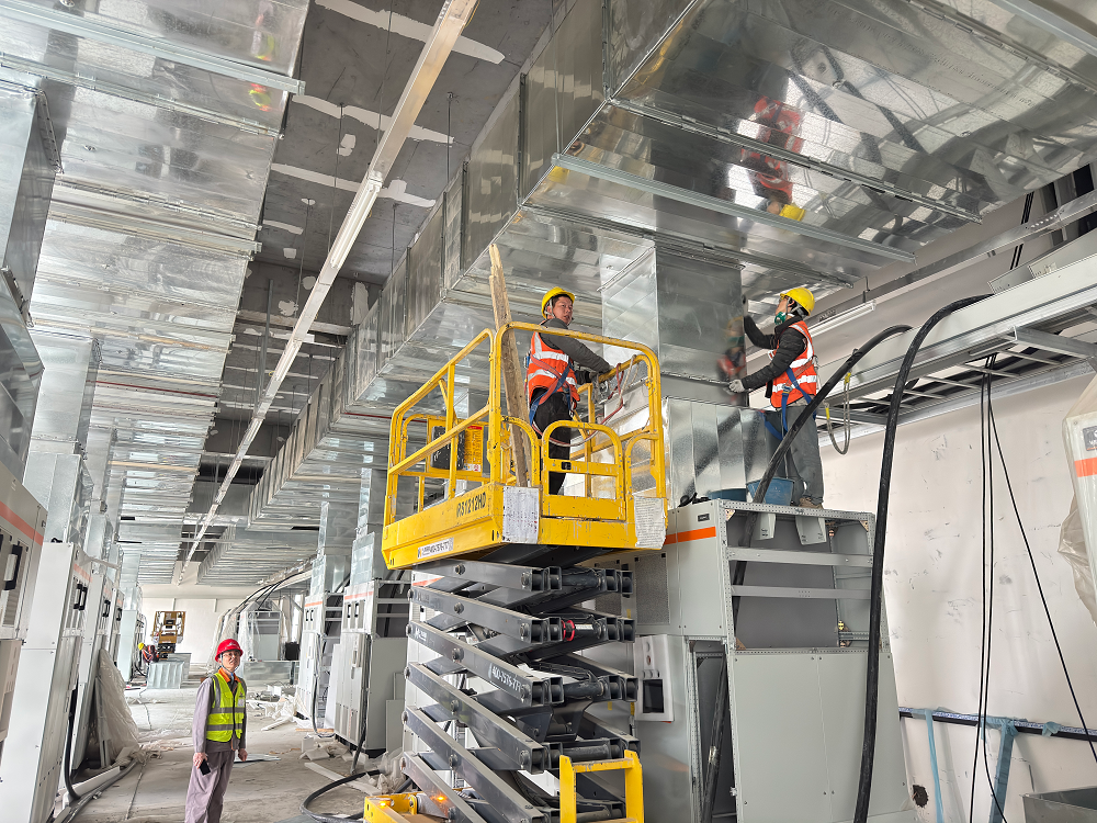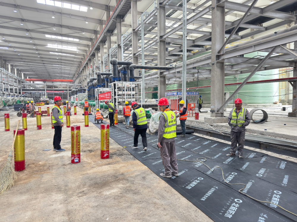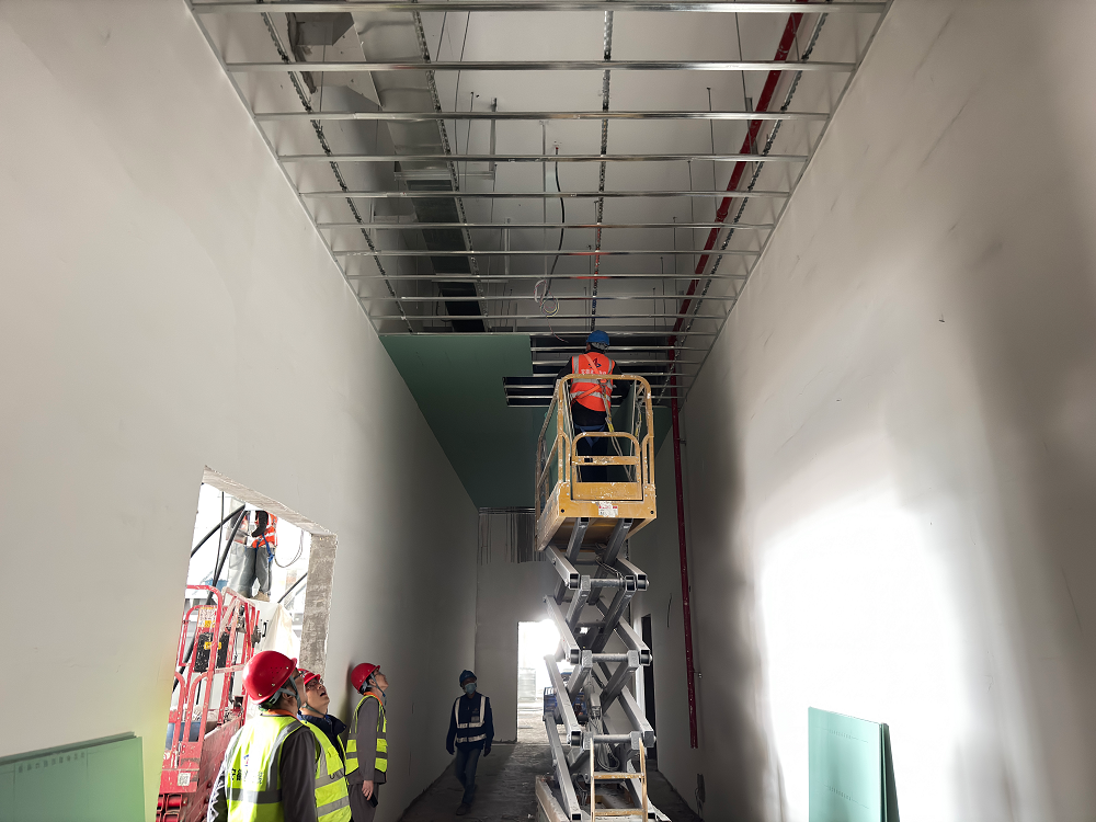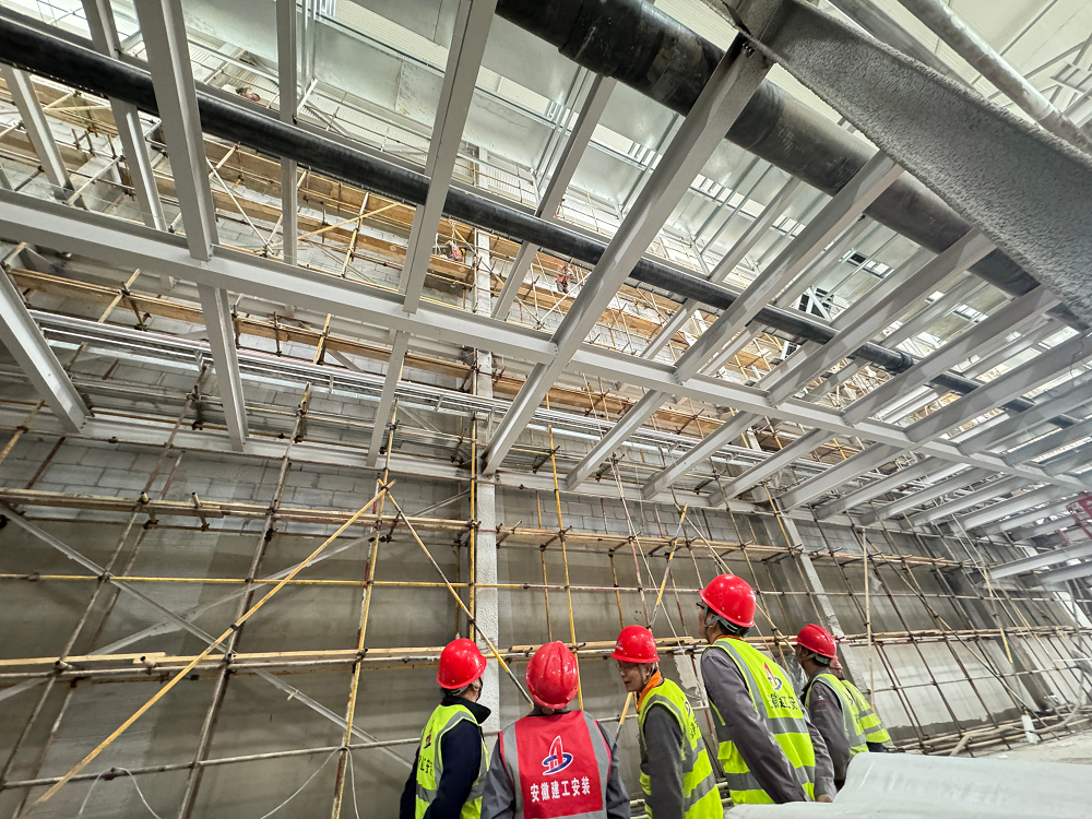 青海高原,氣候惡劣,環(huán)境艱苦,高寒缺氧,但這些困難并沒有阻擋項目部全體成員奮斗的步伐。施工現場,機器轟鳴聲此起彼伏,工人們頭戴安全帽,身系安全繩,操作著各種設備,熟練地進行著防水卷材敷設、吊頂板安裝、鋼筋綁扎、外墻抹灰、風管安裝等作業(yè),每個環(huán)節(jié)都緊張有序,環(huán)環(huán)相扣。項目管理人員穿梭在各個施工點,緊盯現場安全與質量,及時協(xié)調解決施工中遇到的問題,他們全身心地投入到工作中,用專業(yè)的素養(yǎng)和嚴謹的態(tài)度為項目建設保駕護航。