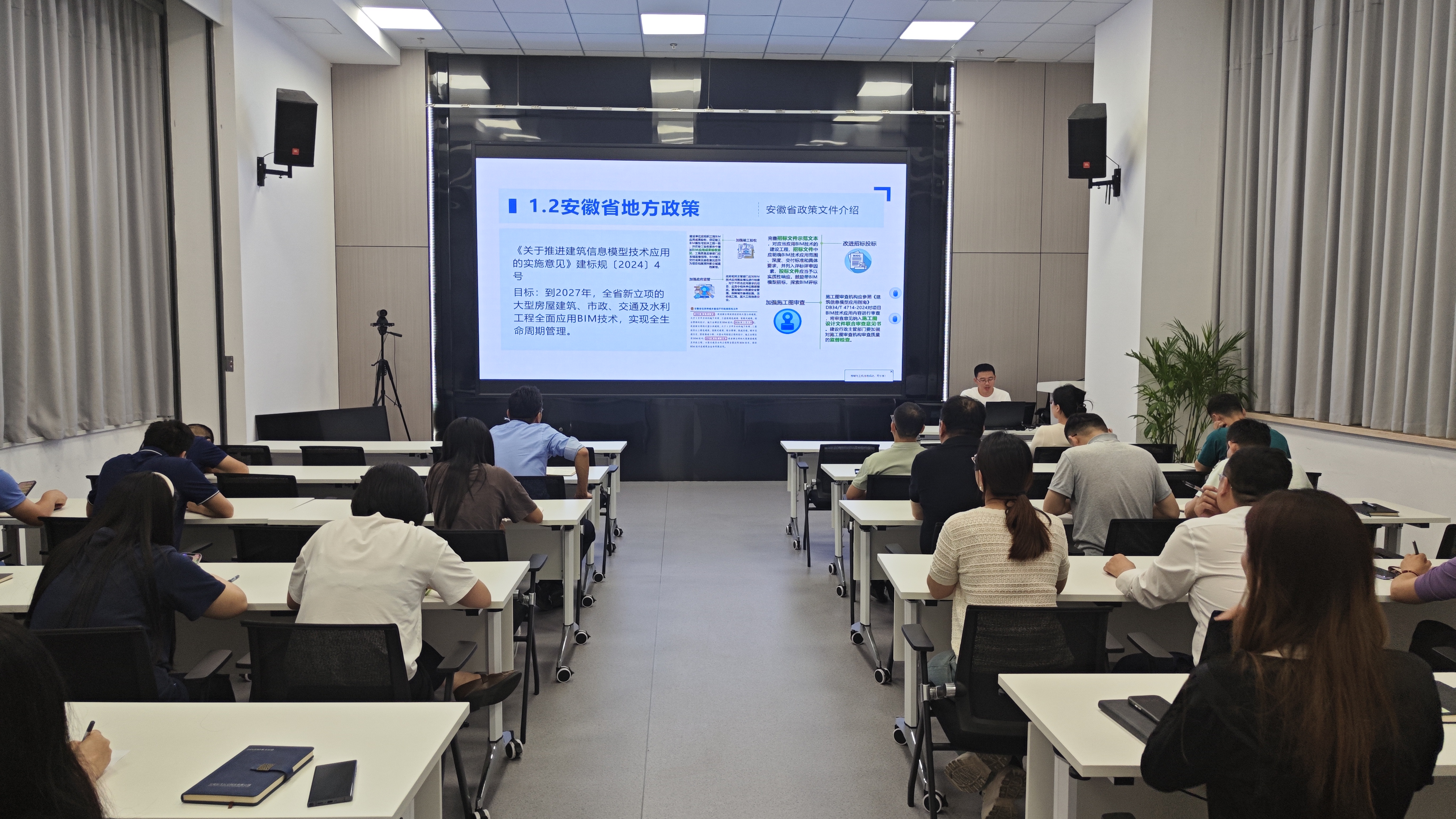 主講人圍繞BIM技術(shù)展開系統(tǒng)講解。梳理國(guó)家及安徽省BIM政策要點(diǎn),深度闡釋BIM技術(shù)概念與原理,著重解析其應(yīng)用價(jià)值與優(yōu)勢(shì)。隨后詳細(xì)說(shuō)明BIM工作流程以及核心技術(shù)應(yīng)用點(diǎn),并借助三個(gè)視頻短片直觀呈現(xiàn)實(shí)際應(yīng)用場(chǎng)景,助力參訓(xùn)人員深化對(duì)BIM技術(shù)的理解。
