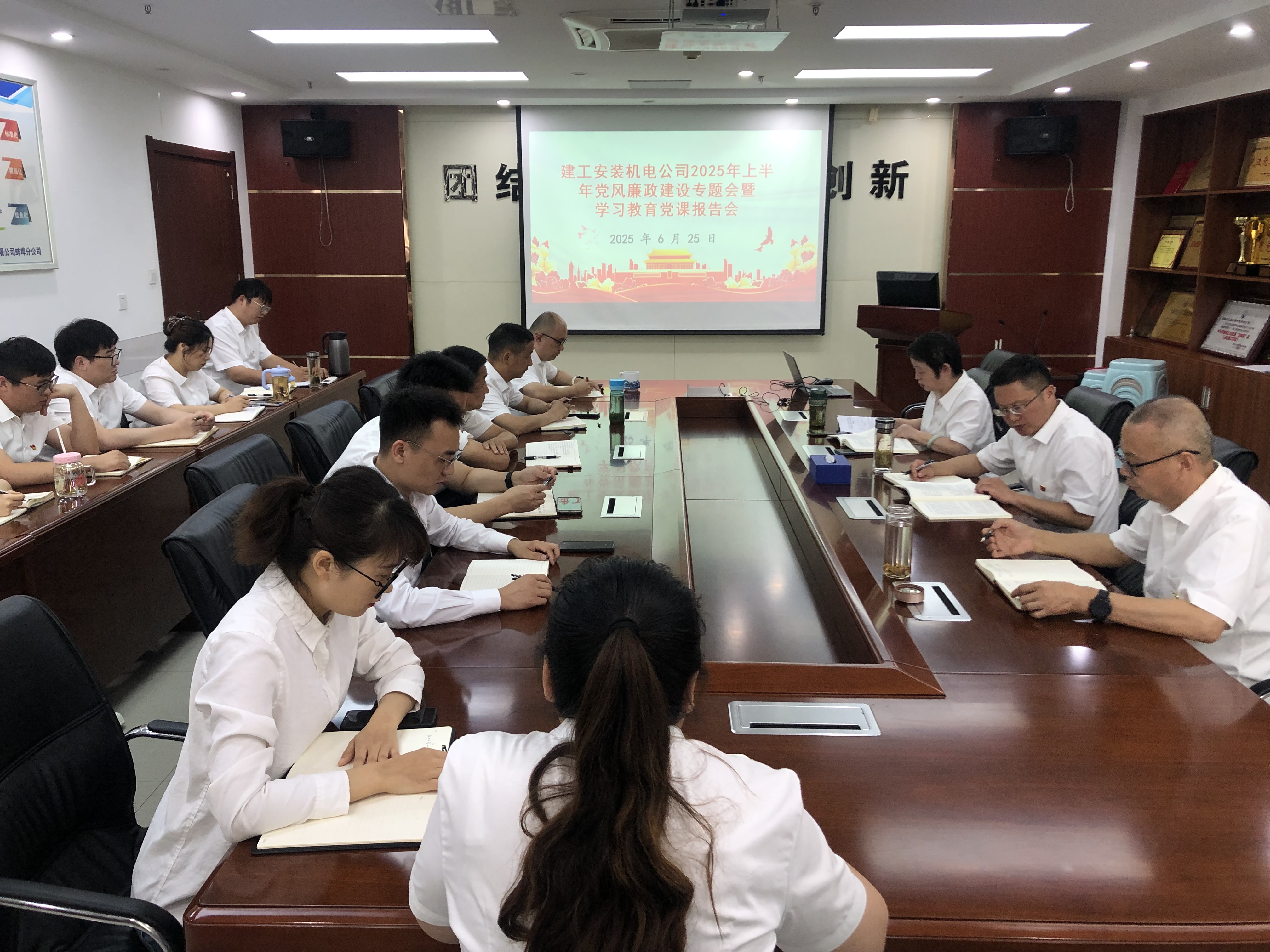 為慶祝中國(guó)共產(chǎn)黨成立104周年,扎實(shí)推進(jìn)深入貫徹中央八項(xiàng)規(guī)定精神學(xué)習(xí)教育走深走實(shí),6月25日下午,建工安裝機(jī)電公司召開(kāi)2025年度上半年黨風(fēng)廉政建設(shè)專題會(huì)暨學(xué)習(xí)教育黨課報(bào)告會(huì)。會(huì)議由黨支部副書(shū)記許素寒主持。