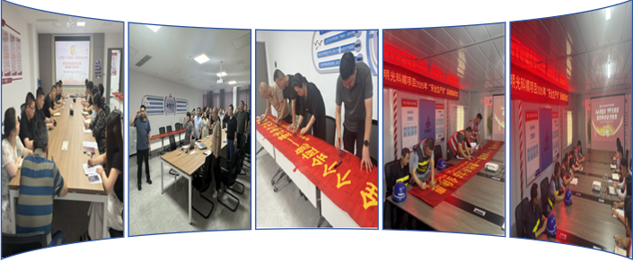 活動伊始,公路公司在機(jī)關(guān)及項目現(xiàn)場打造沉浸式安全文化長廊,以漫畫、案例圖解等形式普及安全知識;召開動員大會,主會場與各項目分會場實時聯(lián)動,公司經(jīng)理現(xiàn)場部署安全重點工作。同時,組織全員觀看安全生產(chǎn)警示片,開展集體安全宣誓、橫幅簽名活動,以儀式感推動安全理念入腦入心。