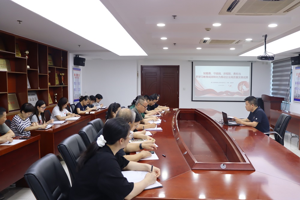 會(huì)上,夏國(guó)祥重點(diǎn)傳達(dá)了建工集團(tuán)慶祝建黨104周年表彰會(huì)暨學(xué)習(xí)教育黨課報(bào)告會(huì)和建工安裝慶祝建黨104周年表彰會(huì)暨學(xué)習(xí)教育黨課報(bào)告會(huì)精神,并講授了題為 《知敬畏 守底線 講規(guī)矩 勇?lián)?dāng) 把學(xué)習(xí)教育成效轉(zhuǎn)化為推動(dòng)企業(yè)高質(zhì)量發(fā)展成果》的專(zhuān)題黨課。黨課中全面梳理了中央八項(xiàng)規(guī)定的具體內(nèi)容,系統(tǒng)闡述了中央八項(xiàng)規(guī)定精神的內(nèi)涵,結(jié)合近期典型案例深入剖析了違反中央八項(xiàng)規(guī)定精神的具體表現(xiàn),并就如何推深做實(shí)深入貫徹中央八項(xiàng)規(guī)定精神學(xué)習(xí)教育,以?xún)?yōu)良工作作風(fēng)凝心聚力、擔(dān)當(dāng)作為,切實(shí)將學(xué)習(xí)教育成果轉(zhuǎn)化為提升工作實(shí)績(jī)實(shí)效展開(kāi)深入探討。
